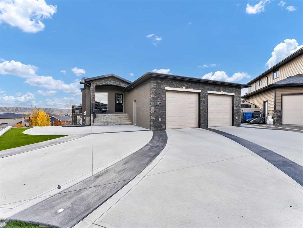 Enjoy spectacular unobstructed coulee views from this executive Ranchlands bungalow situated in a quiet bay backing onto a green space. You will appreciate all of the warm natural light that floods into this home and the amazing views from all of the huge windows in this home. The main floor features an open floor plan with stunning hardwood floors and offers a good-sized living room w/ gas fireplace, a large dining space and a beautiful high end kitchen w/ corner pantry, wall oven, induction cooktop, huge eat at centre island, granite countertops & glass tile backsplash. Down the hall you will find the luxurious primary bedroom which offers a beautiful 4-piece ensuite w/ tons of custom cabinets, & a large walk-in closet with built ins. Conveniently located on this floor you will also find a large laundry room and a great sized front office with glass French doors. The walk-out lower level is bright & wide open offering a huge family/rec room with gas fireplace, built in wet bar w/ dishwasher & wine fridge, and a custom built in wine rack! On this level you will also find 2 bedrooms, a 4-piece bathroom, and tons of storage! Walk right out to the greenspace behind and onto the path that leads you down to the river & wildlife reserve. Enjoy the breathtaking sunrises and sunsets on your large back deck and the beautiful peacefulness that this property provides. A large double attached heated garage, driveway up-lighting and a maintenance free yard complete this outstanding, one-of-a-kind property. This home also offers hot water on demand as well as zone heating. Current Average Utilities are $287 per month.