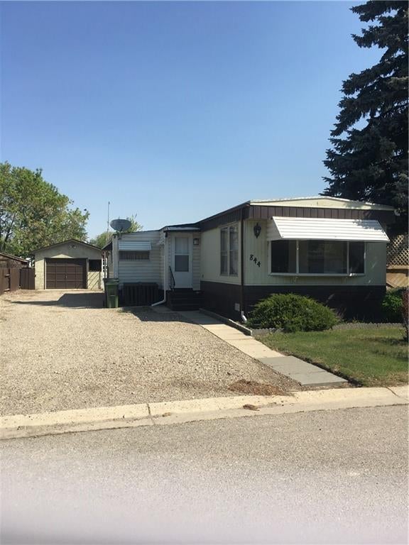 Move In NOW. Vacant. Live and Work Here. Truly Main Floor Living at best. Upgrades include Roof. Hot Water Tank. Furnace. Flooring. Window Coverings. Paint. Stove. .Expansive Not Expensive...Your Bungalow. Main Floor Living At Best. 2+ Bedrooms. 6 appliances. Main Floor Laundry. Upgraded Bathroom with Double Sinks. Double "cheater" Door opens to Master Bedroom. Ensuite. Bright and Spacious. Air Conditioner wall unit stays. Oversized Single Heated Garage Storage Shed for Treasures, motorcycle, etc. with power. Fenced yard. Private Covered Rear Deck .Fenced Yard. Pet Friendly. Dog Run Option. RV Parking. Front Drive Access. Price of Ownership. Immediate Possession Date. Kids walk to schools of choice. Own your Lot. No Lot Fees. Air Conditioners