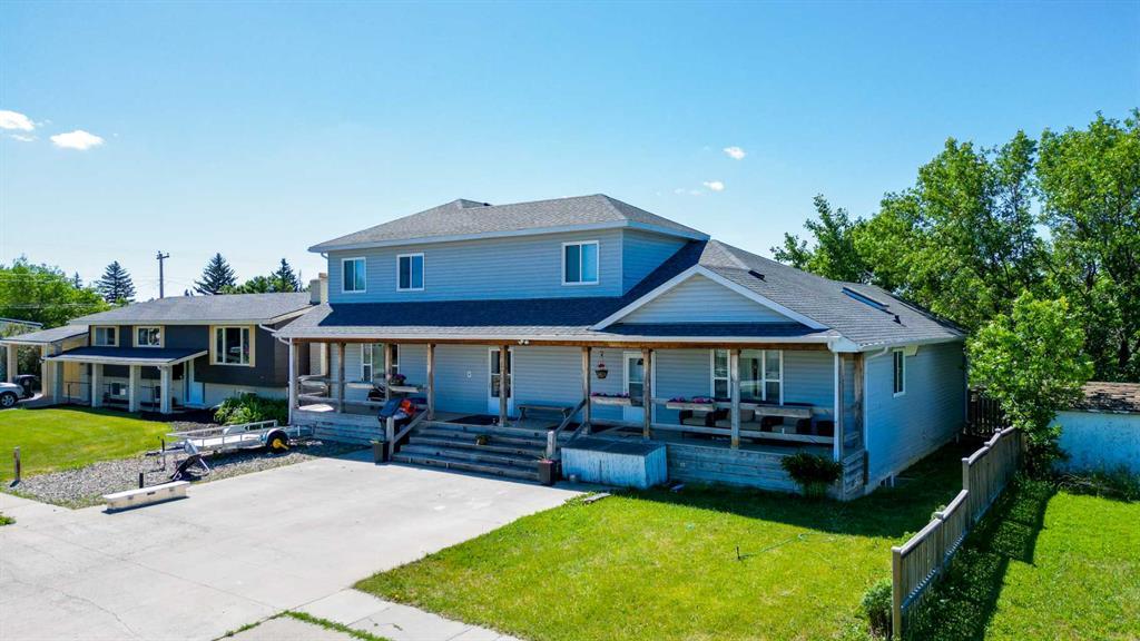 OVER 6,500 square feet of developed space, EIGHT bedrooms, FIVE AND A HALF bathrooms… this is a one of a kind property that you don’t want to miss out on!! Located on a quiet street in the town of Raymond, you will immediately appreciate the sheer size of this home when you pull into the large front driveway. The home has a full length front veranda and a detached shop in the backyard. When you enter the home you are greeted by a large mud room, two piece guest bathroom, and a spacious front entrance area! Built in the early 2000s this home was ahead of its time with an open concept living, dining, and kitchen area complete with a MASSIVE island. Some of the stunning features of this home include: a fresh coat of paint in many rooms and areas, a gym room, a huge games room/theatre room downstairs, the ICF block that goes from the foundation all the way to the top of the home, and the in-floor heating in the basement. This property was built with a mother-in-law suite that comes complete with a separate entrance, kitchen, bedrooms, and bathrooms. Both this kitchen and the main home’s kitchen have gorgeous natural light and plenty of cabinet and countertop space! This home sits on a large, fully fenced lot. Whether you simply have a growing family, are looking for a multi-generational home, or are just looking for an awesome investment in a small town, this home is the one you’ve been waiting for!