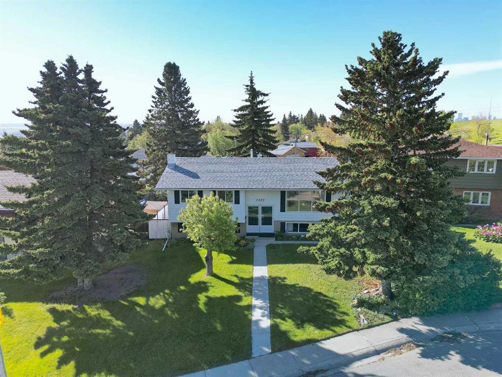 Introducing a delightful home nestled in the heart of Huntington Hills. This bi-level is being offered on the MLS for the first time and is a must-see! Situated on a peaceful, tree-lined street, this pie lot residence features 3 bedrooms and 2 bathrooms, offering a bright and pristine move-in-ready space. Upon entering, you're greeted by a front foyer with double doors that lead up to a spacious living room, filled with natural light from a large picture window. Next to the living room, the dining area connects to the kitchen, which includes a handy peninsula, white appliances, and plenty of room for casual dining or extra storage. The main level also has three generous-sized bedrooms, each with ample closet space, and a 4-piece bathroom. Downstairs, the fully developed basement offers even more living space with a large family room featuring an electric fireplace with a brick surround. There's also a den that can be converted into a bedroom by adding an egress window., another 4-piece bathroom, and a laundry/utility area with plenty of storage space. Outside, you'll find a large backyard with an upper deck, a lower concrete patio, mature landscaping, and a beautiful garden. The oversized double detached garage provides plenty of parking and storage options. Other features are high-efficiency furnace. and newer triple-pane windows in the upstairs bedrooms and bathroom. This home is ideally located just steps from Nose Hill Park and various other parks and schools. With nearby shopping on Centre Street and quick access to the core via 14 Street, this home offers convenience and a sense of community. It combines functionality, comfort, and a great location, making it a fantastic opportunity for anyone looking for a new place to call home. Check out the virtual tour in the links!