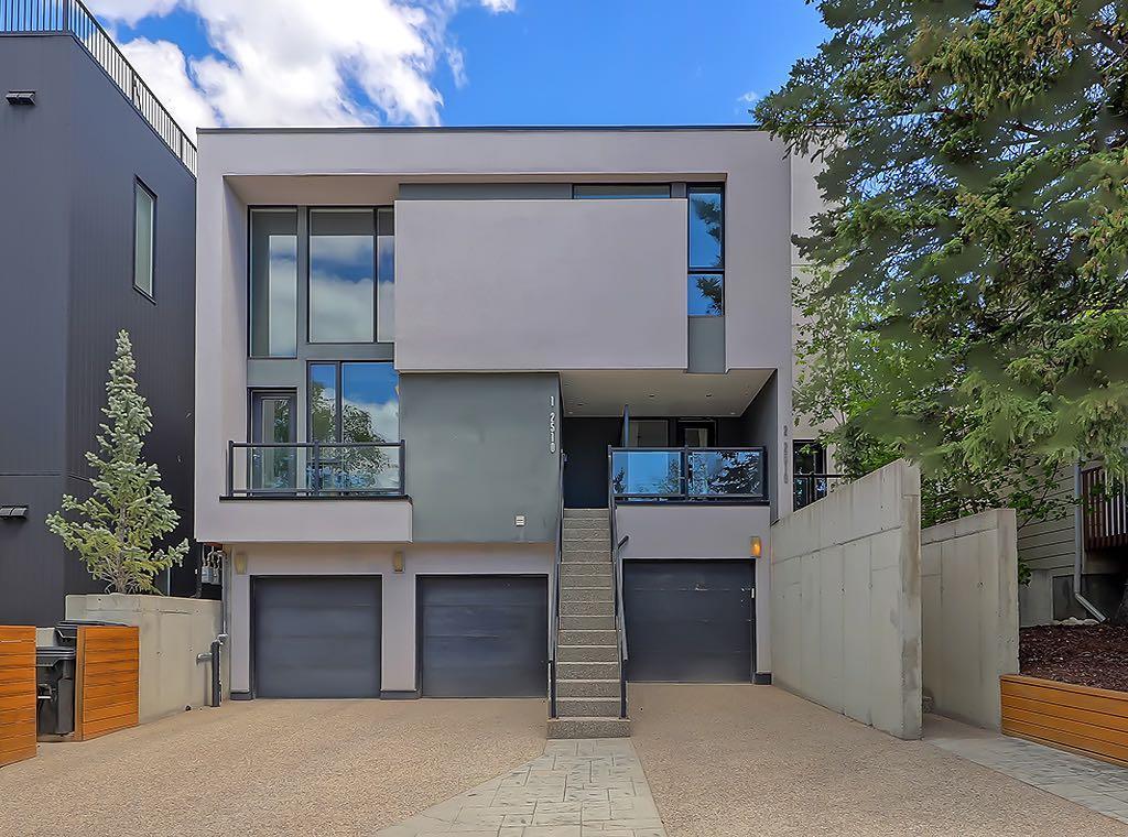 elcome to this exquisite 2-storey contemporary townhouse, perfectly situated almost directly across from a serene park on a quiet street in Bankview. This meticulously maintained home boasts high-quality finishings and keen attention to detail throughout. The property features a single attached garage with a convenient lower mudroom and a versatile finished recreation room, ideal for a den or media area. On the main floor, you'll find a bright and airy living room with a gas fire place, and a west-facing balcony, perfect for enjoying the sunset. The adjacent kitchen and formal dining room are highlighted by a cozy gas fireplace with a glass tile mantle, overlooking a private cedar deck – an ideal setting for outdoor entertaining. The gourmet kitchen is a chef's dream, complete with a large island, undermount sinks, and elegant quartz countertops. It also includes a premium stainless steel appliance package, adding both style and functionality. The home is adorned with hardwood floors and tiled bathrooms, enhancing its modern appeal. Upstairs, discover two beautiful, large bedrooms, each with its own ensuite bathroom. The primary master suite is a true retreat, featuring a massive walk-in closet and a luxurious ensuite with a large glass-tiled shower. Neutral tones throughout the home, complemented by European plumbing fixtures and stylish accents, create a sophisticated yet welcoming atmosphere. This townhouse is not just a property; it's a place you'll be proud to call home. Don't miss the opportunity to own this stunning residence in one of Bankview's most desirable locations