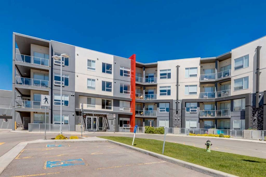 Welcome to Vivace North in the heart of West Springs! This stunning ground level 2 bedroom condo presents an exceptional living opportunity in the highly sought-after West Springs community. This impeccably maintained unit boasts contemporary features such as vinyl plank flooring in the main living area, a stylish kitchen with stainless steel appliances, sleek white cabinets, under-cabinet lighting, quartz countertops, and a spacious central island with an attached eating bar that extends into a built-in dining table. The living room provides access to a sprawling stamped concrete patio with custom glass railing for privacy or a place for your Pup to be outside and enjoy the outdoors. This beautiful unit stands out with two bedrooms, each featuring a walk-thru closets both with upgraded built-in custom closet solutions. Additional practical features include in-suite laundry, an assigned storage locker, bike storage room, 2 underground titled parking spaces, and ample visitor parking. The location offers modern comforts and proximity to a variety of shopping, grocery stores, and amenities, including some of Calgary's premier dining offerings like Mercato West, Vin Room, Blanco, Fergus & Bix, Una Pizza, and 722. Don't miss the chance to experience this exceptional condo. Welcome home!