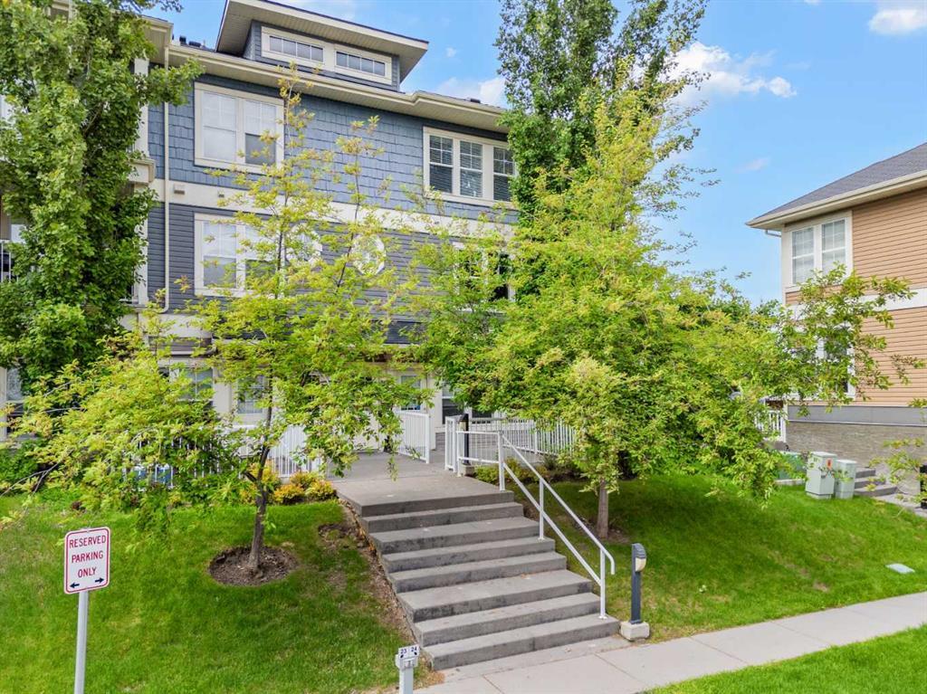 Here's your opportunity to live in a perfectly situated, contemporary & stylish townhome, ideal for young professionals or for those looking for the modern conveniences of townhome living. This is a quiet, 1 bedroom end/corner unit with many upgrades including; upgraded kitchen appliances; ceramic tile throughout the kitchen and bath, tiled shower, upgraded lighting package, & top of the line window coverings. The unit has a cozy, open feel to it & features a primary bedroom, 4pc bathroom, spacious kitchen, living area, & south facing front patio. There is also lots of closet space for storage, as well as a titled storage locker in the heated, underground parking garage. One of the best units in the building; the owner has kept this unit in great condition. You’ll love the newer flooring and brand new paint job! The unit also includes titled underground parking, & in-suite laundry. The parkade is easily accessible, just foot steps from this unit. This home also featured a main level patio that faces south - great for relaxing & enjoying summer evenings. Not many units go up for sale in this desirable building, which provides great proximity to the new South Calgary Hospital and the Lake at Auburn Bay. Some images are virtually staged.