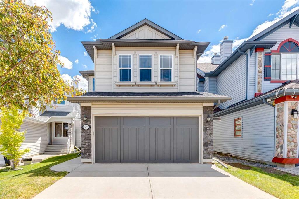 Located in the desirable community of New Brighton, this stunning Cardel built three bedroom, two story home with bonus room is the perfect family home located walking distance to many community amenities.. As you enter the home, you are greeted by a spacious foyer that leads to an open concept living area featuring new carpeting and large windows that flood the space with natural light. The modern kitchen is complete with stainless steel appliances, a large island with seating, and ample cabinet space for all of your storage needs. The dining area is perfect for entertaining guests and leads out to a spacious deck and sunny south backyard with mature trees providing great privacy. Upstairs, you'll find three generous bedrooms. Both kids rooms feature good sized closets and plenty of natural light. Primary bedroom boasts a luxurious ensuite with a soaker tub, separate shower & spacious WIC. Massive bonus room on the second floor provides a great space to relax with family. Don't forget newer roof, freshly painted, great curb appeal & unspoiled basement ready for your creative touch. Walking distance to New Brighton Clubhouse where many activities can be enjoyed such as tennis, volleyball, basketball, newly renovated splash park, hockey & skating plus so much more. Move in ready condition. 10/10- Call and book your private viewing today!