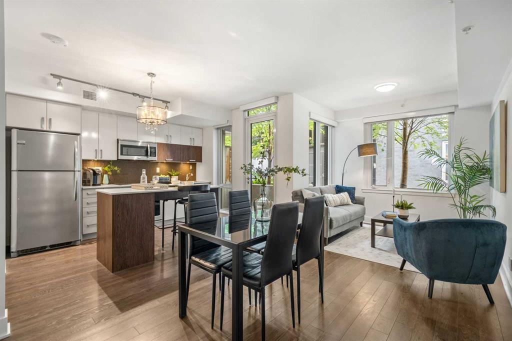 Discover the epitome of urban elegance at First East Village, a gorgeous condo that redefines city living in Calgary's dynamic East Village. This beautiful residence stands proudly with a character-rich brick exterior, inviting you into a world where functionality, contemporary design and comfort converge. Imagine your new lifestyle, walking straight out the door of your private main floor entrance—ideal for pet lovers and on-the-go residents—to the rare luxury of an expansive gated outdoor space, your own private sanctuary amidst the urban energy. Hone your inner chef skills in the kitchen, equipped with stainless steel appliances, quartz countertops, and a functional movable island that doubles as extra prep space and eating bar. Retreat into your bedroom, which offers ample closet space. Embrace the East Village lifestyle with included amenities like an underground titled parking stall, storage locker, gym, yoga room, courtyard and a rooftop lounge complete with a pool table, workspaces, balcony, and a party room. Just steps outside your door, East Village buzzes with cafes, top restaurants, the Riverwalk, and beautiful St. Patrick's Island, placing the best of urban living at your fingertips. Seize the chance to snag this exceptional urban dwelling—this gorgeous home is not just a place to live, but the beginning of a new, elevated lifestyle. Book your showing today!