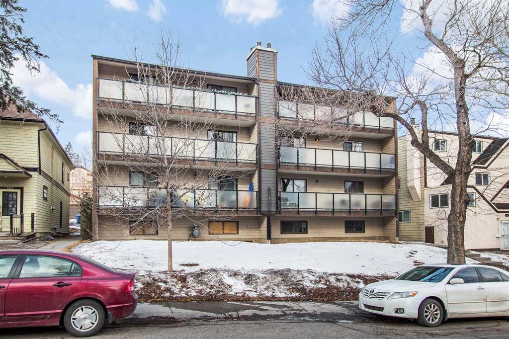 You'll be captivated by this charming penthouse condo, just a stone's throw from 17th Avenue. Tucked away on a peaceful street, it overlooks a delightful park and is only a short stroll from downtown. Inside, the kitchen has been thoughtfully updated with sleek wood countertops, stainless steel appliances, and plenty of storage space. Convenience is key with in-suite laundry, a dishwasher, a 2-piece ensuite bath, and a roomy walk-in closet. The perks continue with a covered parking spot conveniently located right by the door, along with a spacious in-suite storage room. But the real highlight awaits as you step into the living room and out onto the expansive patio, offering breathtaking city views. Retreat to the master bedroom, boasting a striking feature wall, another walk-in closet, and a beautifully updated 2-piece bathroom adorned with exquisite tiles and cabinets. With its attractive price tag, this gem won't stay on the market for long—truly an opportunity not to be missed!