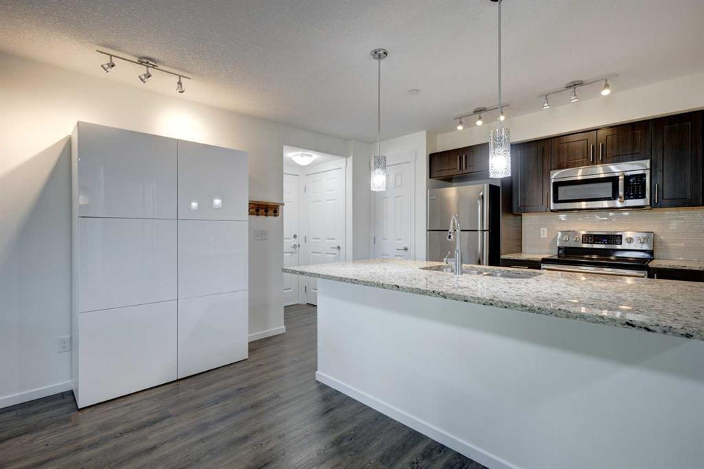 Discover your new residence in Copperfield, a vibrant community offering a delightful 2-bedroom/2-bathroom END Unit apartment with 736 sq ft of living space at an unbeatable value! Enjoy a spacious open-concept layout seamlessly connecting the living room, dining area, and sleek kitchen featuring granite countertops and stainless steel appliances. Hardwood flooring in the kitchen and living room, with newly installed LVP in the bedrooms. The primary bedroom boasts a 3-piece En-suite, while the generously sized second bedroom is complemented by a full 4-piece bathroom. In-suite laundry, additional storage, and a titled underground heated parking stall add convenience, along with a designated locker cage for extra storage. Close to schools including Copperfield School (K-5) and St. Isabella School (K-9), 130 Avenue Shopping area for all your amenities, and major transportation routes (Deerfoot and Stoney Trail), with low condo fees and ample outdoor greenspace, this property also offers a coveted BBQ patio, making it a true gem in Calgary's market!