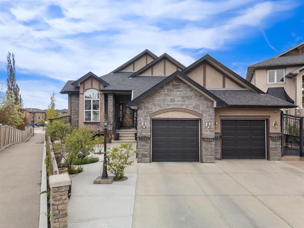 Welcome to this exquisite custom-built walkout bungalow, perfectly situated on a 1/4 acre lot backing onto a serene pond. The home features elegant grey and black marble floors, adding sophistication to every room. The heart of the house is the kitchen, featuring a large center island, an abundance of cabinet space, a one-of-a-kind luxurious appliance package and plenty of natural light. It's a culinary enthusiast's dream come true. Adjacent to the kitchen, the spacious living room overlooks the expansive yard, which boasts over 48 trees that enhance privacy while offering a picturesque view of the pond. The living room also features a gorgeous gas fireplace, creating a warm and inviting atmosphere. The primary suite is a private retreat with a lavish 6-piece ensuite bathroom. Every detail has been meticulously crafted to offer the utmost comfort and luxury. The main level includes a formal dining room, a Den, a freshly updated powder room, an upstairs laundry room for added convenience and access to your engineered stamped concrete patio with a custom wrought iron banister, ensuring zero maintenance while you enjoy the stunning views. Additional features include an oversized attached garage, providing ample space for vehicles and storage. The fully finished walkout basement includes a second full kitchen, two large bedrooms, a 3-piece bath, and a massive flex/games area, all while boasting beautiful views of your backyard and pond, making it perfect for entertaining or accommodating guests. Ample storage space ensures everything has its place. Each level of the home has a sunroom, offering tranquil spaces to relax and enjoy the picturesque surroundings year-round. All gates and the front door are custom-wrought iron and lockable for added security and aesthetic appeal. This home combines beauty, luxury, and practicality, creating a haven you'll be proud to call your own. Don't miss your chance to call this place your home, and schedule a private tour today!