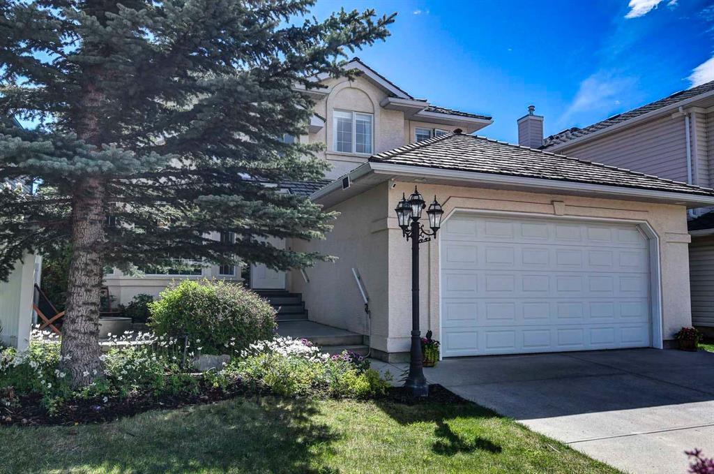 OPEN HOUSE SUNDAY JUNE 23 2 TO 4PM, WOW ! Immaculate 2 storey -over 3,400 sq. of developed space, Are you looking for a spacious home in a quiet community , surrounded by natural beauty and pathway, Impressive 20 ft. entry, Gleaming hardwood floors, living room + dining room, connected to family room, gas fireplace w/stone surround and white built in shelving/cabinets in family room and lower level, Open to stunning white kitchen with New white appliances , Large flat island room for 4 bar stools, Sunny eating breakfast nook, walk through pantry for all your Costco goods continue through to Laundry room with sink. Stunning window space allows for loads of natural light. Access to sunroom and private S.W. yard, fenced with 2 storage sheds and beautiful mature trees. Curved staircase to upper level , Massive Primary room with glass block curved wall, ensuite with huge tiled walk in shower, dual sinks ,separate water closet with a door and a large walk in closet. Deck off primary bedroom for that evening glass of wine or tea. The other 2 bedrooms are also oversized with 4pc bath, one has enough room for a play room or desk. Lower level is a super surprise- soundproofed/wired home theatre room, built in speakers for basement rec room, large family room with 2nd fireplace and a wet bar with fridge. Cozy TV area and a large playroom or party room. Air conditioning, Nest smart thermostats (dual zone). Double oversized heated attached garage( 21.4 x 23.5). Stucco exterior and Treated Pine roof which has been maintained and serviced. Short walk to the Pathways leading to the Bow River, Local riverside trails with Path to Bowness park, Farmers market west/Greenwich and Winsport, this is also home to Valley Ridge Golf and Country Club. Beautiful greens wind through parts of the community. Upcoming Bingham Crossing with Costco nearby. Seller confirms Great Neighbours! Quick access to the Mountains , Downtown and Stoney Trail.