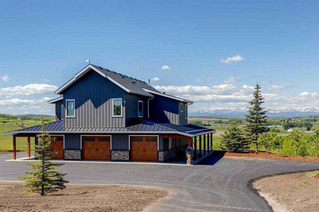 This FOREVER HOME was built for those of us seniors who are country folk at heart and want to stay in the country but desire a lower maintenance home and property that is geared toward their current lifestyle! The upper level is devoted to a wonderful great room with a vaulted ceiling and fabulous windmill ceiling fan. The great-room is surrounded on 3 sides by picture windows so that you can admire the stunning mountain and valley views no matter where you are. The kitchen is open to the great room and features expansive counter space, beautiful custom built Hickory cabinetry with contrasting white cabinets lining one wall (oodles of storage space). Appliances are stainless steel Kitchen Aid and the countertops are all Quartz. The center island is indeed the heart of this home. Just off the kitchen is the upper deck with a beautiful rock, wood-burning fireplace and a staircase down to the yard. You’ll also love the walk-in pantry with custom shelving, the half bath and laundry room on the main floor. The master suite and ensuite boast so many features that you must see it to believe it (please see the Specifications in the Supplements). You have everything you need on one floor including an elevator that is cleverly located behind custom Hickory doors, on both floors, so that it is not at all apparent. The lower level offers a large second bedroom with a walk-in closet, a 4 piece bath and a third spacious bedroom or sitting room (how will you use it). You can already appreciate that while you’re in great health, you will enjoy entertaining your friends and family and, if you need help later, the caregiver will have a very private living area. Now let’s talk GARAGE … you’re going to love the huge, oversized, heated triple garage with epoxy flooring and an attached workshop/storage area that surpasses any other garage ever. If at some point you or your spouse/partner become infirm, the elevator and all the other easy access features will enable you to stay home much longer than might otherwise be possible (it is even located less than 10 miles from the Black Diamond Hospital). Until then, it is just perfect as it is for the maximum enjoyment of everyday life. This home has it all including a great toboggan hill for your grandchildren. Hurry, don’t delay because all those young folk will love it too! Call for an appointment to view it today!