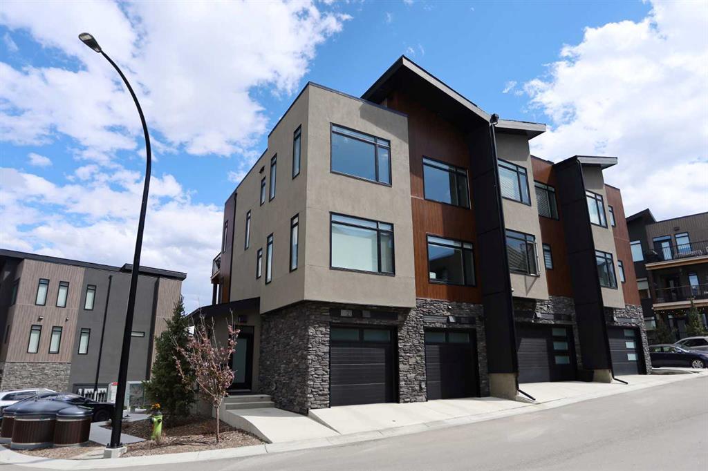 Opportunity knocks here in the upscale condo project from Janssen Homes…welcome to RAVINES OF ROYAL OAK! With its stylish West Coast contemporary design & sleek finishing, you’ll love this beautiful 2 bedroom stacked townhome with its expansive windows & 9ft ceilings, Torlys luxury vinyl plank flooring, custom quartz countertops & wide open views of the courtyard & surrounding neighbourhood. Drenched in natural light, the upper level of this fantastic air-conditioned home is a free-flowing open concept space with sun-drenched living room with huge windows, dining room with large pantry & gorgeous kitchen with full-height cabinetry & subway tile backsplash, loads of counterspace & Samsung stainless steel appliances including brand new microwave/hoodfan (2024). Both of the 2 West-facing bedrooms are a super size & feature sensational windows. The full bath has quartz counters & tile floors, with separate private access from the master bedroom. Insuite laundry with space-saving Samsung washer & dryer. For your outdoor enjoyment, sit back & relax on the large balcony complete with vinyl decking & natural gas line for your BBQ. An alcove on the main level is the perfect spot for your home office, & there is a large closet & access into your insulated & drywalled single garage. Additional features include undermount sinks in the kitchen & bathroom, soft-close doors & drawers with full extension glides, custom roller blinds & wood shelving in the closets. Premium top-grade construction with Argon-filled/low-E aluminum-clad windows & R50 attic insulation, wall-framing members 16” on centre & low-maintenance exterior with acrylic stucco (complete with underlying “Rainscreen” protection) & European Sagiwall vertical plank siding. Unbeatable location next to winding ravines & wetland ponds, within walking distance to bus stops & just minutes to the LRT, & quick easy access to shopping, schools, Shane Homes YMCA, Crowfoot Centre & downtown.
