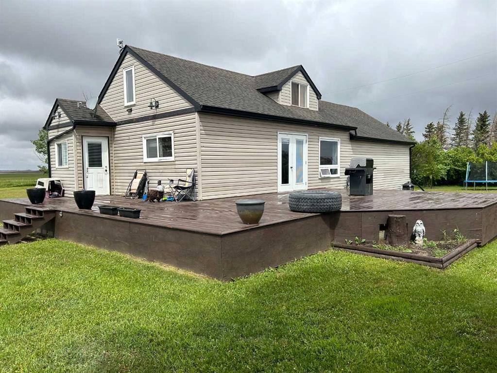 LOOKING FOR AN ACREAGE WITH THAT COUNTRY CHARM, WELL HERE IT IS, 1 1/2 STOREY HOME, 1394 SQFT. 3 BEDROOM, 2 BATHROOM, AND A GREAT SHOP BUT WE'LL TALK ABOUT THAT LATER, AS YOU WALK IN YOU WILL APPRECIATE THE OPEN FLOOR PLAN, VERY NICE KITHCHEN, LARGE DINING ROOM TO ENJOY THOSE FAMILY DINNERS PLUS GARDEN DOORS TO DECK, SPACIOUS LIVING ROOM HAS A COZY WOOD BURNING STOVE, GREAT FOR THOSE WINTER DAYS, SLIDING DOORS TO BACKYARD, ONE BEDROOM, AND A 4PC & 3PC BATHROOM, AS YOU MOVE UPSTAIRS YOU WILL FIND A GREAT ROOM FOR AN OFFICE, A CUTE BEDROOM, AND STORAGE SPACE, IN THE BASEMENT YOU HAVE ANOTHER BEDROOM, FAMILY ROOM, MECHANICAL ROOM AND COLD ROOM, A FEW RENOS OVER THE YEARS INCLUDE, SHINGLES, WINDOWS, KITCHEN, FLOORING, BATHROOM, LIGHT FIXTURES, JUST TO MENTION A FEW, YOU WILL SPEND A LOT OF TIME OUTSIDE, MORNING COFFEE ON THE VERY LARGE DECK, TREED AREA FOR FIRE PIT, GARDEN SPACE FOR YOUR FRESH VEGIES, PLENTY OF SPACE TO PARK & STORE ALL YOUR TOYS INSIDE A FENCED YARD, OK GUYS, THERE IS A 30X40 HEATED SHOP, 220V, NAT. GAS, 16' CEILING, 14X20 OVERHEAD DOOR, YOU CAN DRIVE A SEMI IN THIS ONE, 30 AMP RV PLUG AND ANOTHER 30 AMP PLUG IN THE BACKYARD, THIS ACREAGE WILL BE PERFECT FOR YOUR FAMILY TO ENJOY COUNTRY LIVING