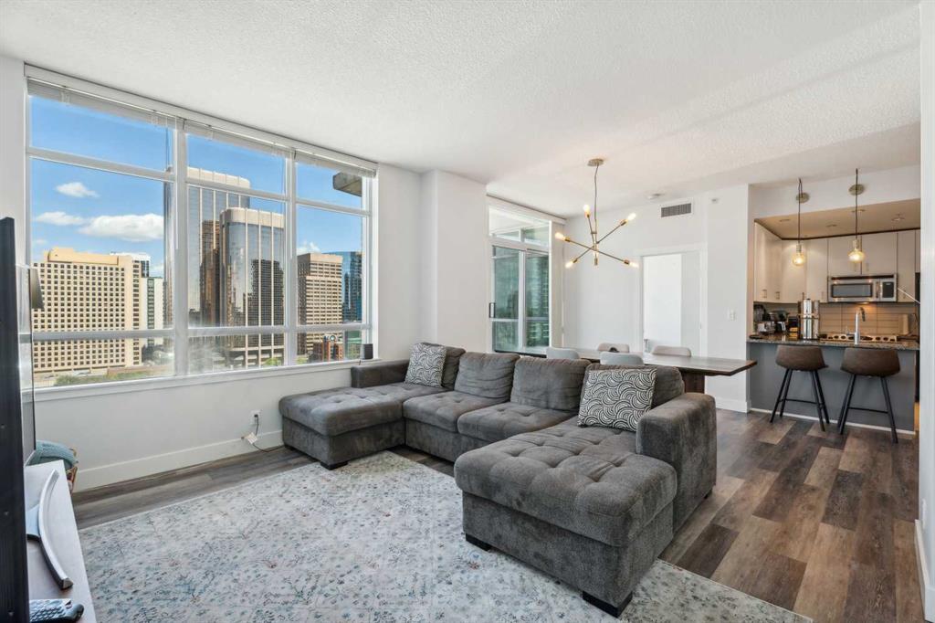 Discover Suite 1606 at Xenex on 12th. A perfectly proportioned inner city home with captivating views of the Rocky Mountains across Calgary’s downtown skyline. Here are five things we love about this condo (and we’re sure you will too): 1. A SPACIOUS AND CONTEMPORARY FLOORPLAN: Featuring 1075 SqFt of refined and contemporary living space, 2 beds + den, 2 full baths and 9' ceilings; this is a full-size home! A tastefully updated kitchen is well appointed with stainless appliance package, granite counters, refinished cabinets with updated hardware, pendant + pot lighting and breakfast bar, while opening onto a generous-sized dining nook and built-in pantry designed by California Closets. The living room easily accommodates your furnishings and features floor-to-ceiling windows with all day natural light, while the private balcony becomes an extension of your living space in the warmer months. The bedrooms offer great separation, providing privacy for roommates or guests. Large in-suite storage/laundry and generous-sized foyer finish off this prime example of urban living. 2. AN EXCITING & CONVENIENT NEIGHBOURHOOD: Situated in the heart of the Beltline and just a few blocks to the famous Red Mile. Walk 5 minutes in any direction to explore some of Calgary’s best shopping, restaurants and nightlife. Whether you are heading Downtown or to the mountains, commuting is a breeze with easy access to 14th Street, Crowchild and Bow Trails + you are on the bike path. 3 THAT PRIMARY SUITE: Situated in the NW corner, the King-sized Primary suite is stunning with wrap-around floor-to-ceiling windows and unobstructed city and sunset views. The walk-in has been custom designed by California Closets, while the 3-piece ensuite is equipped with granite vanity and full tile surround shower. 4. WORK FROM HOME? Not a problem here! Uniquely designed with work from home in mind with not only a generous-sized home office/den, but also secondary work space off the kitchen. 5. AN AWARD-WINNING BUILDING: Xenex on 12th is a SAM award-winning condo building built by Bucci Development offering a range of one, two and three bedroom floorplans featuring gorgeous windows, underground titled parking and central AC. Residents enjoy an ideal Beltline location, daytime concierge, car wash bay and easy access to Downtown, Uptown and major arteries.