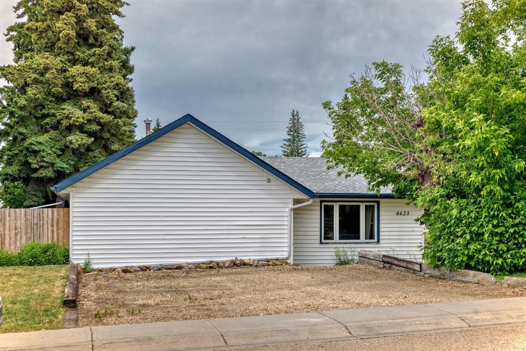 Welcome to this delightful 3-bedroom bungalow located in the heart of Sylvan Lake. Close proximity to shopping, restaurants, schools, and convenient access to Highway 11. This home sits on 0.26 acres, consisting of 3 total lots. It's perfect for investors interested in development or nature lovers who can appreciate a large yard, gardening, outdoor activities, or a fire on summer nights. Inside, step into the welcoming front foyer leading to a bright living room with updated windows flooding the space with natural light. Adjacent is a roomy kitchen boasting ample cabinetry and a cozy dining area overlooking the backyard's natural beauty. The house comprises 3 good sized bedrooms and a full bathroom with convenient in hall laundry. The basement is concrete, perfect for storage and additional space. Step out to the covered deck surrounded by mature trees, which offer privacy and tranquility. The backyard features a single detached heated garage with an RV parking pad, a shed, and a greenhouse for plant lovers, providing a country-like atmosphere within city limits. Home does need some TLC, but the possibilities are endless. Shingles were replaced about 8 years ago. Hot water tank is 1 year old. Sylvan has so much to offer, and so does this home! An incredible opportunity for an investment or a first time home owner. Add this one to your list!