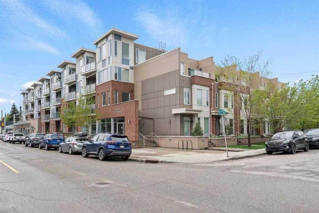 Contemporary in Kensington West! Welcome to the SAVOY by Truman Homes where you can embrace the nicely evolving walking lifestyle of Kensington West with shops, restaurants, bistros, deli & services, plus numerous new additions on both sides of 19th Street and with more store fronts opening soon along Kensington Road. Easy access to transit, the Bow River pathway system, Kensington Village and Downtown, plus well-developed community infrastructure with schools, parks, playgrounds, outdoor pool, arena, community centre, etc. UNIQUE and VERY BRIGHT Corner Unit with South and East Exposures and TWO BALCONIES. This unit features significant investments in Value Enhancements (see Listing Supplements for detailed descriptions), plus Air Conditioning. Nice entry with a closet and bench provides a quiet introduction to the living space. Sleek modern look kitchen features high end Liebherr and AEG appliances, shimmering silver backsplash, quartz countertops, and plenty of cupboard space including custom storage cabinets with decorative glass (by California Closets). Opens to the pleasant dining area with sliding door (w/Hunter Douglas Silhouette Window Shade) to the East balcony (access was added by Seller after building completed) which provides your own outdoor café. The comfortable corner living area is flooded with wonderful natural light. The door (w/Phantom Screen) from the living area opens to the South balcony which has plenty of additional outdoor space and a gas line hook up. Perfect for summer BBQs and entertaining! The spacious primary bedroom features custom closet organizers (also by California Closets). Luxury Ensuite with large open shower, deep soaker tub, and Kohler designer vessel faceted glass sink. Flexible 2nd Bedroom/workspace with Murphy Bed & custom built-in cabinets (by California Closets). Beautiful "Spa" style main bathroom with huge shower and stylish glass vessel sink. The convenient in-suite laundry also has helpful organizer shelving. Further enhancing the SAVOY lifestyle is a West facing roof top patio. A secure, heated, Titled underground parking space, a storage locker (located on the main floor of the building, away from parkade dust), and bicycle storage complete the picture. Ready to MOVE IN and ENJOY!