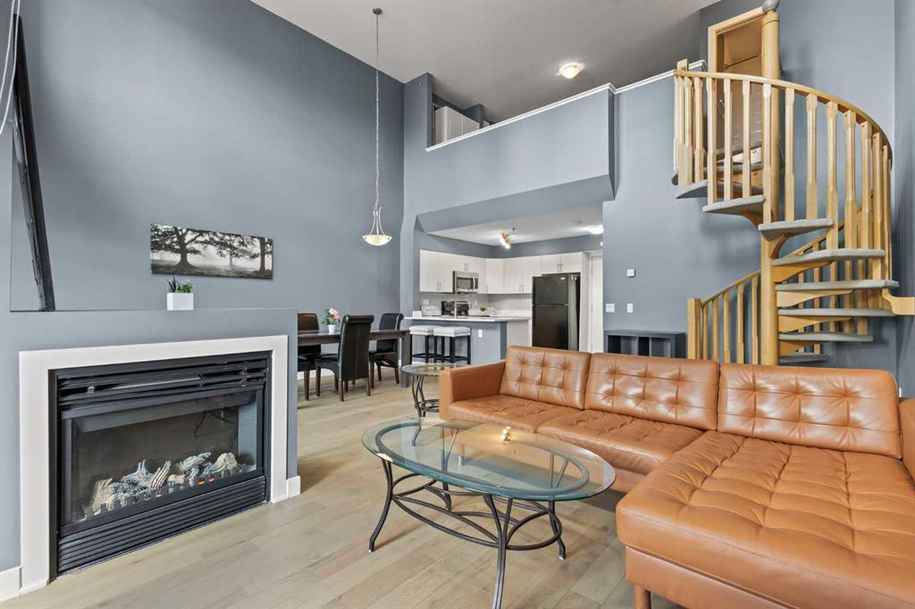 PENTHOUSE LOFT with A/C and private ROOFTOP PATIO in the desirable Paradyme building!! Prepare to be wowed from the second you walk into this stunning TOP FLOOR condo that has been completely RENOVATED inside and features gorgeous HARDWOOD floors, a brand NEW kitchen with Quartz countertops, 2 full updated bathrooms and an impressive Loft design with 18 ft ceilings!! WOW!! If you are looking for a unit that is light and bright with a modern, cool design that is not like every other condo in downtown Calgary, this is 100% it. The kitchen features new white cabinetry, quartz countertops, an eating bar, black appliance package, tile backspash and tons of storage. The kitchen flows seamlessly into the dining area which is complemented by an East facing balcony with charming French doors and gorgeous views of the city. The living room is filled with natural light from the two-story ceilings and is complete with a two-sided fireplace. A renovated 3 piece bath with gorgeous TILE floors and a laundry room complete the main floor. Head upstairs to the Loft bedroom which is large enough to fit a KING size bed and is complete with 4 piece bathroom and closet organizers. The door from your bedroom leads to your private rooftop patio which is the perfect getaway after a long day at work or a great space to soak in the West Sun while entertaining all your family and friends. This unit is packed with features you will absolutely LOVE!! A/C, TITLED parking, convenient in-suite laundry, private rooftop patio access, 18' ceilings and lets not forget the views!! Situated mere moments from trendy 17th Avenue where you can enjoy the convenience of stores, dining spots, and the lively downtown hub all at your finger tips! This is the perfect opportunity for urban enthusiasts or investors looking for their next profitable rental. ALL FURNISHINGS & items are available to be included in the sale which also makes this the perfect TURN KEY rental opportunity you have been looking for!!