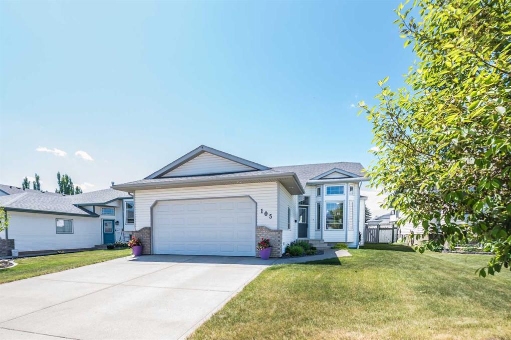 A nicely renovated bi-level with 5 bedrooms and 3 bathrooms! The curb appeal is accented by the double front attached garage. The entryway greets you to the open style floor plan. Grey toned laminate floor runs through the main floor. The sunken living room has large bayed front windows, a fan, a gas fireplace with tile surround and a decorative shiplap feature. The eating area overlooks the living room and is flooded with natural light. White painted cabinets are complemented by the decorative open shelves, glass front display cupboards, full tile backsplash, crown moldings, stainless steel appliances (gas stove), sil granite sink, a pantry & a patio door with a Phantom screen door to the deck. The king sized primary bedroom features double windows, a fan, a walk in closet and a 3 piece ensuite with painted cabinets, a window and a new rain head shower fixture. There are 2 additional bedrooms (one with a walk in closet) and a 4 piece bathroom. The basement has a large laundry area with a window, a 4 piece bathroom, two additional large bedrooms (one doesn't have a closet) and a family room. You will appreciate the mature yard with trees for privacy, a deck with a wood pergola above, a garden area and a unistone patio. There is ample storage space in this home with a crawl space under the sunken living room. The shingles were replaced around 2015. The garage door opener was replaced about a year ago. Upgrades (around 2022) include: laminate throughout the main floor, most light fixtures, baseboards and casings, painted cabinets, front door painted and new window, new interior doors and more! A great location within walking distance to the new school, parks and path system.