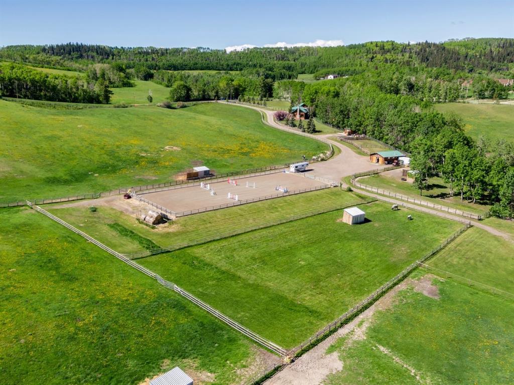A spectacular property very well set up for horses and offering great revenue potential with boarding of horses! This 70 Acre property is amazing with its rolling gentle slopes and views! Features that provide a perfect home for horses, with an 85’ x 205’ outdoor arena built to commercial specs, approximately 7000 ft of newer post and rail fencing, 4 Richie outdoor waterers, 6 shelters, 5 large field pastures and 6 smaller day turnouts! Enter the property through the Automatic Command Gate and start the experience while driving up to the Log Home and Garage. This home has had a complete interior renovation in 2020, All new vinyl windows in 2018 and a New High Efficiency furnace and tankless hot water this year! With 2 bedrooms, an open to below loft, vaulted ceilings, gas fireplace and beautiful kitchen you can just move in and enjoy this story book setting! The garage, shed and Barn are all log buildings and were refinished and re-chinked in 2016. If you like to entertain you have a massive cedar deck with tremendous views for your guests to enjoy. The roofline extends over part of the deck so your protected from weather when the bar-b-q is going if necessary! If some guests need to stay the night you have a cozy 16’ x 12’ cabin space for them, nestled into the trees beside the seasonal creek that runs through the trees. Your horses can enjoy the surroundings as well with a heated 3 stall barn, with its own power panel and also including hot and cold water.. Lots of open field with smooth wire fence and of course the rest is post and rail. The oversized double garage is insulated and heated so great for vehicles or as a shop! With a location close to Calgary, Priddis, Diamond Valley and Okotoks, services are never far away. Roads are paved to the property and there are some excellent locations for future building of an indoor equestrian facility or even possibly a second home ( Subject to Foothills County Approvals Process). Properties like this are rare so don’t miss the opportunity to make it yours!