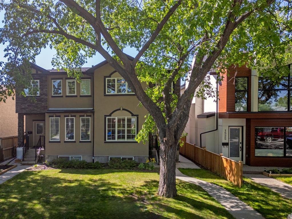 Welcome to a world of sophistication and style in this luxurious semi-detached home nestled in the heart of Capitol Hill. Situated on a charming cul-de-sac lined with beautiful trees, this exquisite residence sparkles and shines like gold. Step inside to discover a magnificent haven of modern comfort and refined living, adorned with soaring 9-foot ceilings on the main floor and gleaming hardwood floors that lead you through the well-appointed main floor.. The gourmet kitchen is a culinary dream, featuring stainless steel appliances, granite countertops, a generous pantry, an inviting eating bar, and maple cabinetry. The adjacent dining area sets the stage for memorable meals and gatherings, while the inviting living room, graced with a cozy gas fireplace, extends to a deck with a gas hookup overlooking a private south facing yard and a double detached garage. with a paved alley. Ascend the sweeping staircase to find two expansive bedrooms, a convenient laundry room with a sink, and a lavish primary sanctuary designed for relaxation. The primary bedroom retreat offers a spa-like ensuite with double vanities, a deluxe jetted soaker tub, dual sinks, and a separate stand-up shower. Abundant natural light fills the room through large windows, providing a tranquil setting with views of the picturesque tree-lined street below. The lower level features a versatile illegal suite with a private entrance, complete with a well-appointed kitchen, a large bedroom with a walk-in closet, a cozy gas fireplace, a dining area, and a spacious living room.. This space offers flexibility for extended family living and variable accommodations. Conveniently located in the vibrant inner city, this home offers easy access to downtown, SAIT, The Jubilee, shopping centres, a daycare a few doors down, entertainment venues, parks, cafes, schools, and public transit. Embrace the allure of luxury living – schedule a showing today and make your dream home a reality!