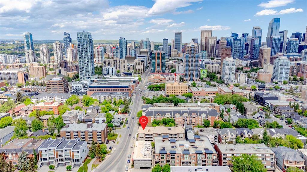 OPEN HOUSE Friday August 2, 4-6 PM & SATURDAY August 3, 11 AM - 1 PM. Walk Out Corner unit condo! Updated throughout including open concept kitchen with island, pot lights and ample counter space and cabinets. Luxury Vinyl Plank flooring throughout and Built in Cordless Cellular Window coverings throughout. Bright and Modern bathroom. Huge Bedroom with two large windows, custom built in desk and shelves, and modern built in headboard. Ensuite Washer and Dryer, Ensuite storage area and separate secured storage Locker. Enclosed and secured parking with electric plug in. Walkout your own private entrance to all the amenities of 17th Ave SW. Please note size of unit is based on it being above grade. This unit is located below grade level.
