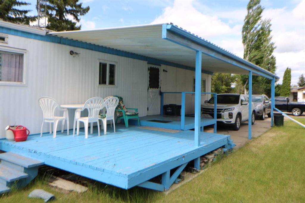 GREAT PROPERTY WITH TONS OF POTENTIAL! Very well kept property on a large corner lot and in a really nice quiet neighborhood. Nicely done open concept from the kitchen to the living area. This property has upgraded vinyl windows (2003), new furnace and hot water tank(2008) plus many more upgrades over the recent years. This property has an addition complete with a wood stove for heating and could be used as another bedroom or a rec room or office, etc. Property also includes a portable air conditioner for those warm summer evenings. Nice size deck for your summer bbq's or just morning coffee. Great area off the south (back) of the property with a firepit which is great for entertaining. There are two other areas in the addition plus the shed that are excellent for storage. A carport and covered deck plus two driveways (great RV parking) are a bonus for this property. The Nature Trail and a K-12 school are all within walking distance. Alix has a great golf course (Haunted Lakes) as well as fishing nearby and Red Deer, Lacombe and Stettler area all under 45 minutes away. This is a perfect starter home or downsizer.