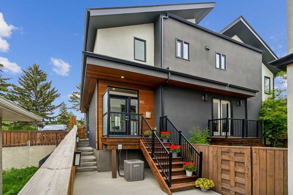 Welcome to 80 34th Ave SW, an exceptional fully detached executive condominium that seamlessly blends luxury and smart home technology. Prepare to be captivated by the meticulous craftsmanship evident in every corner of this unique inner-city residence. Step into the expansive Master Retreat featuring a gas fireplace and elegant oak built-in shelving. The spa-like five-piece ensuite and expansive walk-in closet offer a serene sanctuary for everyday indulgence. The modern kitchen is a culinary masterpiece with ample cupboard space, innovative drawer-in-drawer storage, and stainless appliances complemented by KRION pure white countertops. The open-concept dining and living area is adorned with skylights, vaulted ceilings, and beautiful hardwood floors, seamlessly connecting to the sprawling patio. Spanning over 350 sq ft, this outdoor haven is perfect for hosting guests or relaxing in solitude. Additionally, a private fenced outdoor space allows for furry friends to roam freely. The lower level accommodates two well-appointed bedrooms, a luxurious four-piece bath, and a wet bar boasting a custom-built 70-bottle wine rack. A versatile second living room or flex space completes this level, alongside a spacious laundry area and direct access to the single attached garage. This intelligent home features Control4 automation, a high-efficiency furnace, HRV system, and central air conditioning, central vac, designed for both comfort and sustainability. Situated in Erlton, mere steps from Mission's vibrant shops and restaurants, river pathways, and downtown proximity, this is urban living at its finest. Experience firsthand the unparalleled sophistication and functionality of 80 34th Ave SW. Schedule your private viewing today and discover a new standard of urban luxury living.