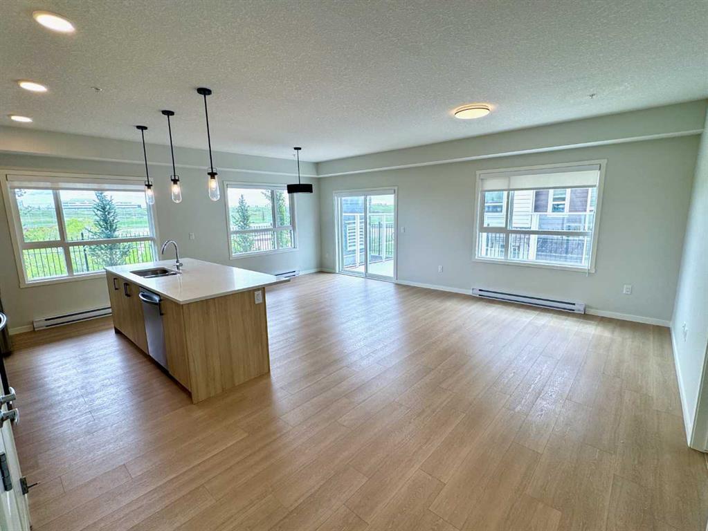Welcome to 360 Harvest Hills, your oasis in the heart of Calgary. This beautiful condo with an open floor plan offers spacious living. Nestled in a serene, new neighbourhood, this corner unit offers you 2 bedrooms and 2 bathrooms with the perfect blend of modern convenience and tranquil living. It’s minutes away from various restaurants, shopping centres, grocery stores, scenic trails and parks, and just 20 minutes away from downtown. Plus, you will have the added convenience of being within a 10-minute drive from Calgary International Airport.Step inside, and you will discover an inviting open floor plan where natural light dances across sleek surfaces. The centrepiece of the spacious kitchen is the stunning quartz countertop island, ideal for both culinary creations and casual gatherings. In the master bedroom, you will find a walk-in closet and a 4-piece ensuite bathroom, including a double vanity. Away from the master bedroom and near the front entrance, you will find a second bedroom and a 4-piece bathroom. In the living area, you can gaze out from the east-facing windows and step onto the large balcony (13' x 24') where you'll be treated to picturesque views of the lush greenery of the golf park, with no buildings to obstruct the view. It also has heated, underground parking, perfect for Alberta winters. Whether you're seeking a long-term investment or a vibrant urban lifestyle, this condo offers the best of both worlds.