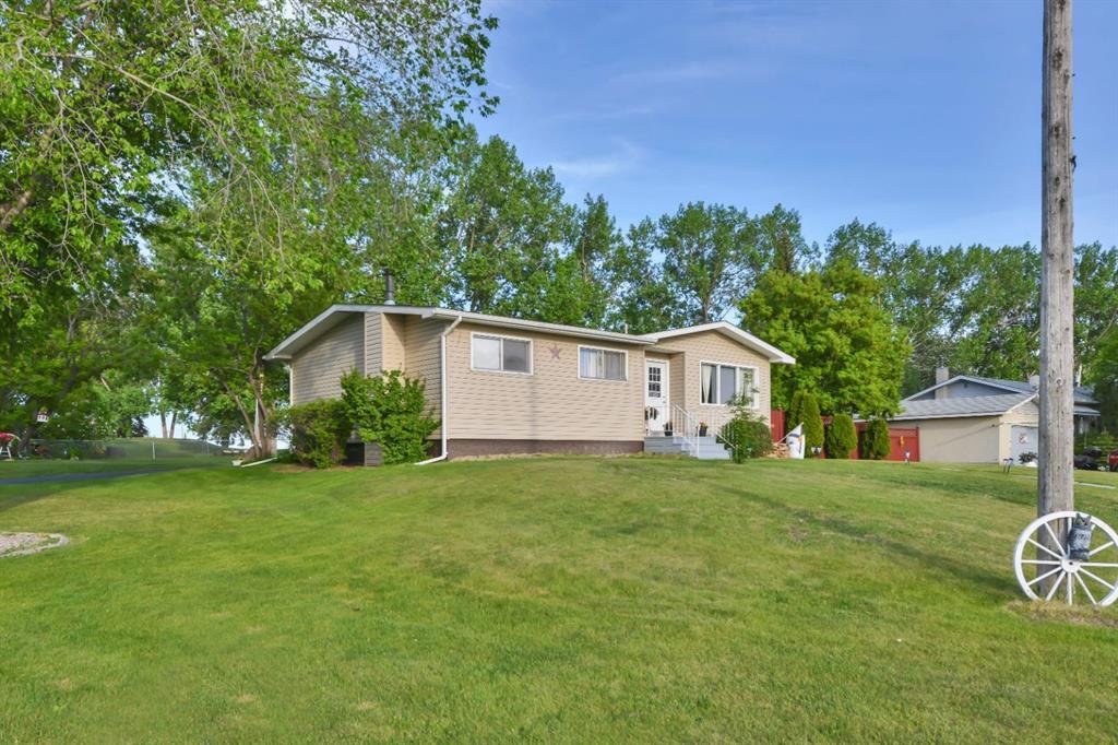 Looking to RELOCATE TO CENTRAL ALBERTA? Look no further! Nestled in this quiet and quaint community of Bowden, this beautiful bungalow and its massive corner lot is the perfect place for a family to grow and put down some roots! These 1.5 lots come together to create one of the biggest and most well kept lots in the entire town! And backing onto hole #1 of the golf course! You will immediately notice the curb appeal and the warm inviting feel this home has to offer. When you enter the home, you'll be greeted by the well lit living room and its West facing view of the quiet Crescent it resides on. Lending to a perfect place to enjoy your time, and share laughs with your family and friends in the glow of every evenings sunset. As you venture further into the home, you'll appreciate the inviting kitchen with its laminate counters and modern backsplash. As well on the upper level, there is a newly renovated 5pc bathroom with adorable twin sinks to give everyone the space they need to get ready to attack the day! Down the hall, you'll find each of the 3 generous sized bedrooms on the upper level, each with inviting and warm laminate flooring you'll be sure to admire. This home for the right price can be yours FULLY FURNISHED! This is incorporated into the list price. From the TV's to the beds to the rugs, it can all be yours! As you venture into the basement, you'll see the spacious layout that is ready for your fingerprint, and an additional spacious 4th bedroom! Within the private and relaxing backyard, there is an enclosed hot tub ready for you to take the edge off of every long day you have. And the detached single garage is insulated and heated with its own wood burning fireplace. Recent upgrades include newer shingles, the renovated 5pc bathroom, new gutters along the entire roof, as well as a new main sewer line to end of the property line! This beautiful home is ready for some new memories!