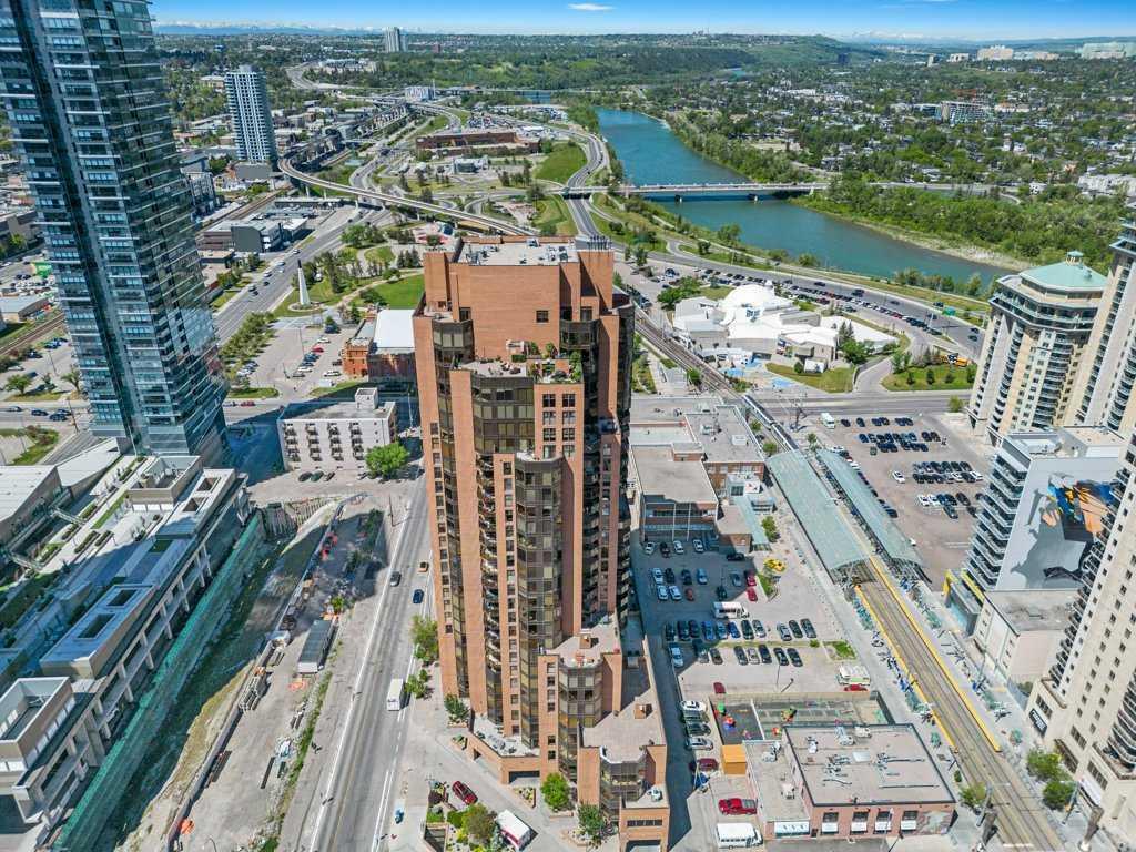 Wow… The views never end from this affordable 2 bed 2 bath unit in the prestigious Westmount Place! This building is loaded with amenities & offers the convenience & security of 24-hour Concierge service. Enjoy the lap pool, hot tub, Racquet ball and Squash courts, fitness/gym centre, billiards room, steam and dry saunas. Located in West Downtown steps away from the free C-train line & the Bow River pathway system to enjoy leisurely strolls or bike rides through nature. Walk to pubs, restaurants, entertainment establishments & walk or ride the train to the City Centre business district. Inside you’ll discover an updated, air conditioned home flooded with natural light from ample windows! Take in the amazing views from this 16th floor corner unit highlighting the Rocky Mountains, the Bow River, city life below and amazing sunsets! Just move in as the renovations have already been done. Low maintenance laminate & tile flooring. Updated trim, doors, baseboards and freshly painted. Updated bathrooms, gleaming white kitchen with granite & stainless-steel appliances. Loads of cabinets & counter space will please the chef in your home. The kitchen is open to the living & dining rooms & are perfectly proportioned to entertain friends & family while they all take in the majestic views! The Primary bedroom is huge! Bring your full-sized bedroom suite as it will fit! Lay in bed & enjoy the views or step out onto the balcony thru patio door directly from the bedroom. The full ensuite bath will pamper you, enjoy a bath in the deep soaker tub. There is a second bedroom, 2-piece bath, large in unit storage & laundry room. Even the car will be pampered in the secure, heated parkade with 2 storage lockers in front of the parking stall. Extra long stall will accommodate a full-sized truck!