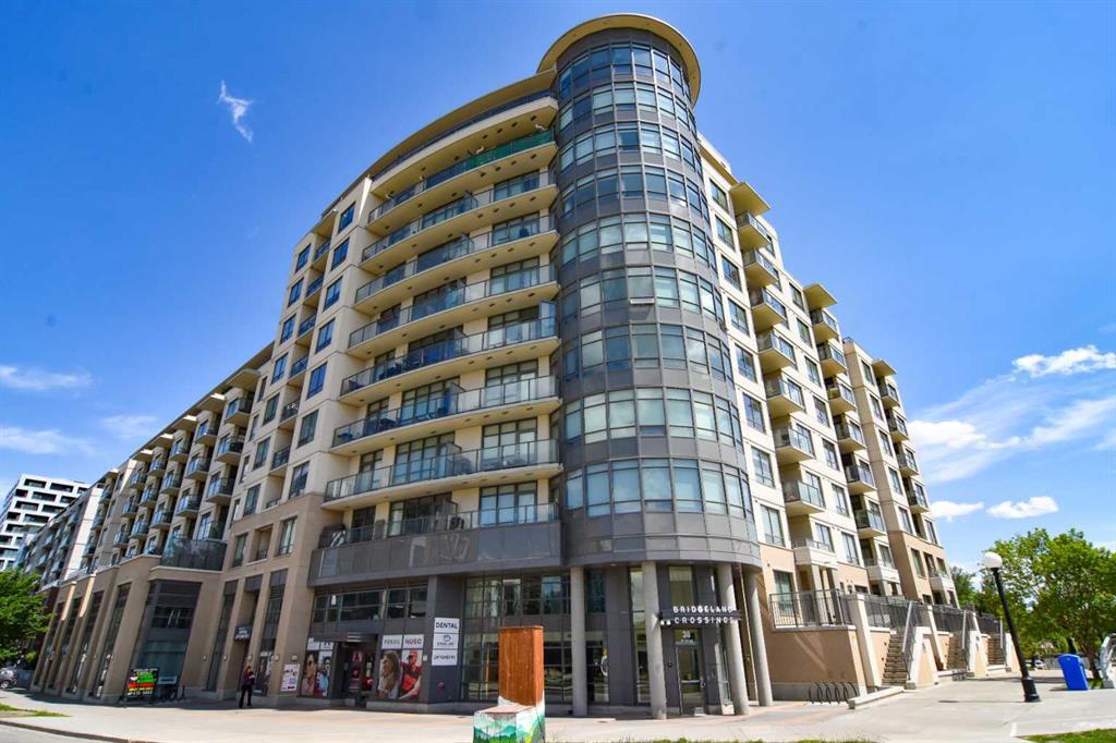 Discover this stunning 2-bed, 2-bath unit nestled in Bridgeland Crossings! With an open concept layout, enjoy the convenience of each bedroom positioned on opposite sides of the unit. Admire the breathtaking view of the terrace below and soak in the morning sun through expansive windows. The modern interior boasts sleek kitchen cabinets, quartz countertops, stainless steel appliances, including a gas cooktop, and ample storage space. Entertain with ease in the spacious dining and living areas, or step out onto the private covered deck for year-round BBQs. The primary bedroom features a walk-in closet and a 4pc en-suite, while the second bedroom offers a double walk-thru closet and a 3pc bathroom. Additional perks include air conditioning, in-suite laundry, titled underground parking, and a storage locker. Enjoy the building's amenities such as a gym, theatre, guest lounge, courtyard, and pet-friendly atmosphere. Bridgeland is renowned for its vibrant community, proximity to trendy eateries, the Bow River, and easy access to Downtown via the nearby C Train.