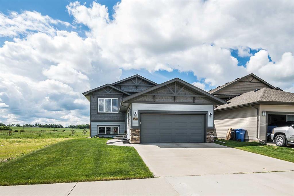 Fully finished 4 bedroom, 3 bath bi-level backing onto incredible prairie views! Enjoy your morning cup of coffee listening to the birds and watching the ducks swim about in the pond; it really is such a peaceful spot. There are 9' ceilings on the main floor making it feel airy in the open concept living area. The kitchen offers maple cabinetry, stainless steel appliances (fridge upgraded in 2020), a walk in pantry, an upgraded granite sink, and an island with eating bar. The primary suite is the ideal size for a king bed, has a roomy walk in closet, and a beautiful ensuite with over-sized vanity, large soaker tub, separate shower, and a water closet. A second bedroom and full 4 piece bath complete the main floor. The basement was completed by the builder in 2016 with the same design style as upstairs. It has an open family room, 2 big bedrooms, 4 piece bathroom, and utility/laundry room. In-floor heat is roughed in for the basement. Central vacuum is roughed in for the house. The backyard offers a South facing deck, overlooking a pond and pasture land; such a soothing place to relax after a day's work. Attached garage is insulated and drywalled and measures 19'6"x23'9". Penhold is a very welcoming, quiet community with a mix of young families and retirees that has many of its own amenities already and just an 8 minute drive to Gasoline Alley (Costco).