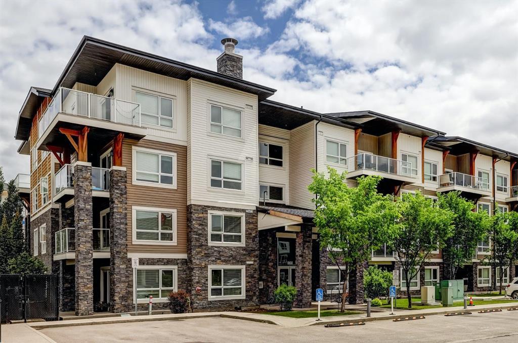 Contemporary 2 Bed 2 Bath FULLY FURNISHED condo in Skyview Ranch. Nothing to do - Just Bring your suitcase! Perfect for first time buyers or savvy investors. This Bright & Spacious CORNER UNIT has Sunny South AND West Exposure. This 939 SqFt condo boasts an open floor plan, with loads of space! The Kitchen features Stainless Steel Appliances, plenty of Cabinetry, Quartz Countertops and a Breakfast Bar. The Living Area is Open and Spacious, with a dining area and a large south facing balcony just off the Living Room. Excellent layout provides privacy with the 2 bedrooms separated on opposite sides of the condo. King sized Primary Bedroom with walk-through closet & 4 pc ENSUITE Bath. 2nd bedroom is generous in size with a large closet and big window, and the Second Bathroom is just across the hall. Laundry is conveniently located within the unit. There is a good sized foyer & front closet, as well as an Office Nook with Built-in Work Station. One TITLED Parking Stall and a storage cage in the Heated Underground Parkade, and plenty of Visitor parking. This area has so much to offer! Walk to parks/playground, stores, numerous shops, restaurants, and Schools. Easy access to transit, major transportation routes (Deerfoot Tr, Stoney Tr & Metis Trail), Cross Iron Mills Mall and the Airport. Walls freshly painted In June 2024. Gas Line for BBQ. Warm Cork Flooring, attractive Ceramic Tile in bathrooms and Carpet in the bedrooms. Pet Friendly Building (with board approval). All Furnishings and Household Goods currently in the unit are INCLUDED. Don’t miss out! Schedule a Showing today!!