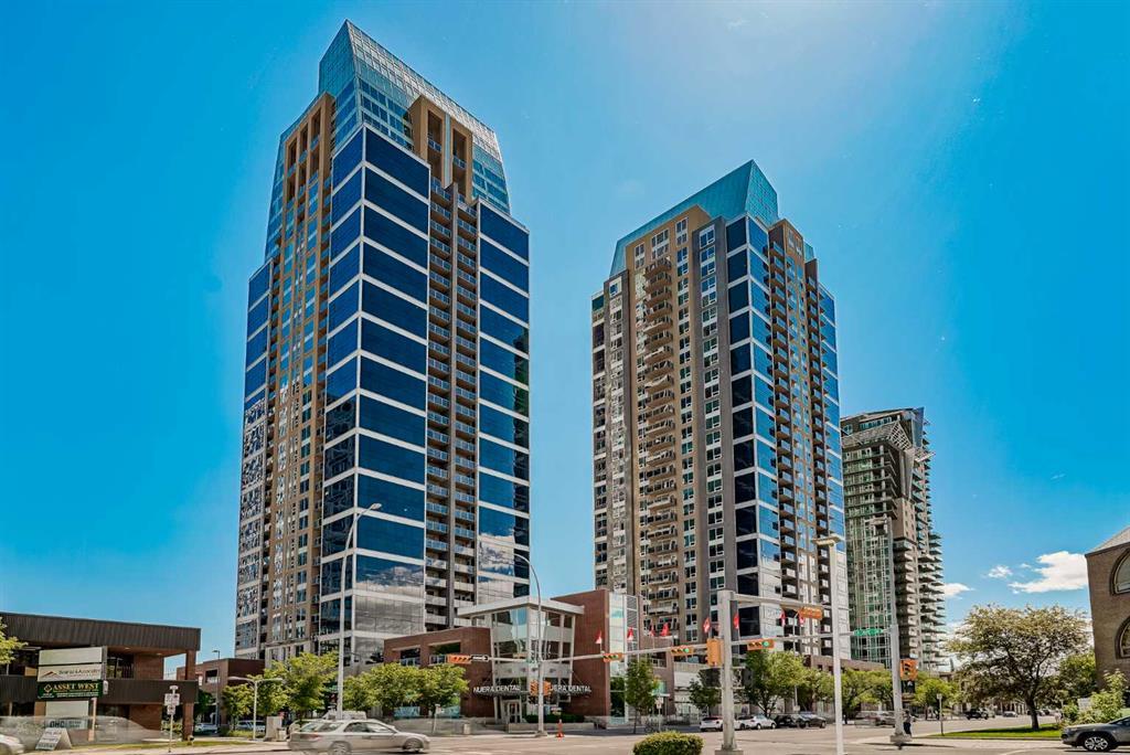 Welcome to the most adorable hideaway on the 19th floor! This charming apartment offers a fabulous kitchen, decked out with sleek dark cabinets and ample counter space, perfect for whipping up your favorite meals. The unique touch? A table seamlessly attached to the cabinets for a cozy dining nook. The living room is spacious and bright, opening up to a south-facing balcony where you can soak in breathtaking views. It's the ideal spot to sip your morning coffee or watch the dazzling fireworks from the nearby Stampede which is right around the corner! With one cozy bedroom and a pristine four-piece bath, this apartment is perfect for comfortable living. Plus, enjoy the convenience of in-suite laundry and an underground parking stall. Stay active and entertained with the building's fitness center and rec room. Located close to the vibrant 17th Ave, you'll be in the heart of the action, with trendy shops, delicious eateries, and lively entertainment just steps away. This is more than just an apartment; it's your new favorite place to call home!