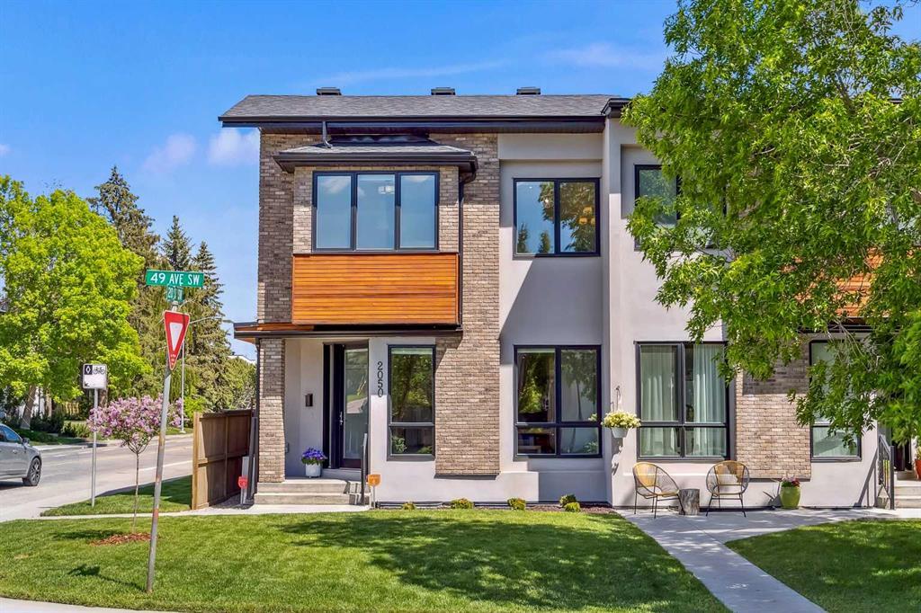 Step into contemporary luxury with this beautiful two-storey custom home. No detail was overlooked in creating this bright, open concept floorpan. Soaring 9-foot ceilings span every level, complemented by a stunning customized staircase with glass paneling. Oversized windows and skylights bathe the interior in an abundance of natural light. Soak in the natural light and enjoy the benefits of central AC on hot summer days. The show-stopping kitchen leaves nothing to be desired with its full suite of Brigade (Viking) appliances including a gas range, massive quartz island with integrated dinette table, and custom cabinets. Hardwood floors flow seamlessly throughout the main level. Upstairs, the sprawling master retreat assures spa-like relaxation with its 5-piece ensuite featuring a fully tiled shower with rainfall shower head and body sprays, plus a freestanding soaker tub with statement faucet. Two spacious bedrooms, laundry and a full bath complete the second level. The expansive developed basement offers exceptional bonus living space with a huge rec room, bedroom and full bathroom. Outdoor living is made easy with the fully landscaped and fenced yard sitting on a great corner lot. The home is ideally located with schools, amenities and easy access to major transportation roads. This is a great neighbourhood for young families - just blocks from parks, playgrounds, ice cream shops and the vibrant Marda Loop district. It's a short walk to River Park, Sandy Beach, athletic fields/aquatic centre. Just a short drive to downtown with nearby schools from elementary to university level. The perfect central location with amenities galore! Don't miss your chance - book a private tour today!