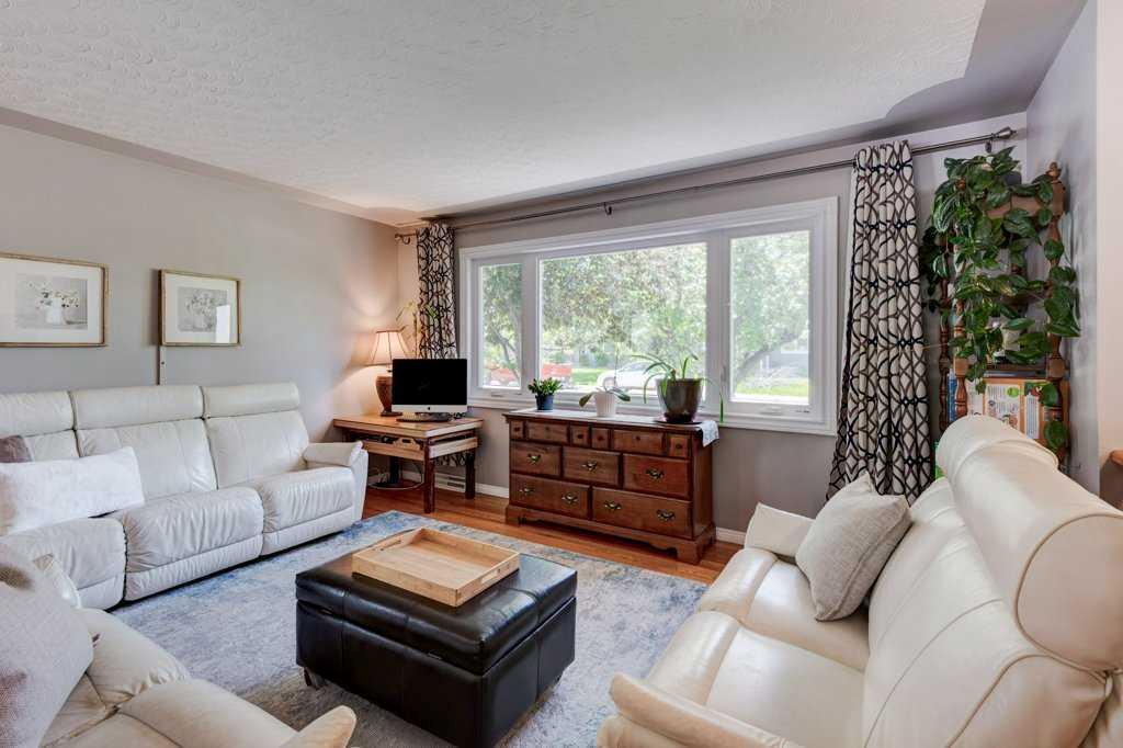 Charming bungalow on one of the best streets in Fairview! Gorgeous yard front located on a quiet tree-lined street. Natural light floods the main living space from the south facing front window with tree views. Kitchen features craftsman cabinetry, decorative plaster ceiling, new stainless stove & warm cork flooring. Original hardwood throughout the living and dining areas. Spacious primary bedroom (fits a king size bed), updated main bath with jetted tub and 2 secondary bedrooms with refinished hardwood compete the main floor. Fully finished basement features a spacious family room with gas fireplace on thermostat a large bedroom or home office, 3 piece bathroom, and a laundry room with built in cabinets and laundry tub. Notable updates include shingles replaced 2009, hot water tank 2016, front storm door, triple pane windows in living room, dining room & kitchen. Original maintained furnace. Lovely tranquil backyard with mature trees and perennials, maintenance-free vinyl fencing, gas line and retractable awning. Double car garage with workshop & attic storage. Amazing central location with easy access to transit, schools and shopping, just minutes to Chinook Mall and Downtown.