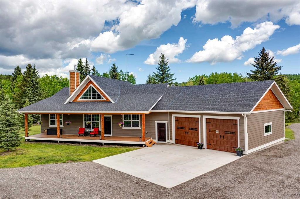 Private, Peaceful, Abundant and Like NEW. This spectacular property in the beautiful community of Whiskey Creek, South Bragg Creek. This charming bungalow, just 4 years old, sits on an expansive and unbelievably PRIVATE 8-acre parcel, serene natural surroundings that create a sanctuary with, and abundant sunshine that brightens every corner of the home. The bungalow design ensures convenience and charm, featuring two spacious bedrooms on the upper level, perfect for comfortable living. Step into the beautiful farmhouse kitchen, where modern elegance meets rustic charm. The kitchen boasts high-end appliances, including a gas range and built in wall oven, large center island and, and a cozy atmosphere that’s perfect for family gatherings or entertaining guests. The living room is a true highlight, with vaulted ceilings and a corner wood stove that easily heats the main floor, creating a warm and inviting ambiance to this home. Adjacent to the main living area is a large den, perfect for a home office or a quiet reading nook or 3rd main floor bedroom. The full basement development was completed in June 2024, adding even more living space and potential to this already impressive home. With its contemporary finishes, bright and open floor plan, and high-quality craftsmanship throughout, the home exudes modern comfort and elegance. The quality and condition of this property are rare finds in today's market. The property also features a heated triple garage with 2 x 10 foot wide and 9 foot high doors, each bay with a floor drain, 1200 square feet, 220-volt power and ample room for a workshop, catering to all your storage and project needs. Outside, you'll find this 8 acres rail fenced and gated making it ideal for horse lovers. The land is ready for your shop, it's fully equipped with power, water, and a 2nd septic system, along with a quick connect at the farm pole for easy generator connection and all power lines are buried, maintaining the property's pristine, unobstructed view. For added convenience, the property boasts a loop driveway, making access easy and accommodating for multiple vehicles. The 8-acre lot provides plenty of space for outdoor activities, gardening, or simply enjoying the tranquility of nature. Whiskey Creek is known for its close-knit community, incredible neighbours and scenic landscapes, and close proximity to the amenities of Bragg Creek, making it an ideal location for those seeking a blend of modern living and natural beauty. This home is just a 15-minute drive to Kananaskis, offering endless opportunities for outdoor adventures, and only 20 minutes to Calgary, providing easy access to urban amenities while enjoying a peaceful rural lifestyle. Imagine waking up to the serene sounds of nature, exploring your own private acreage, and enjoying all that the wonderful community of Whiskey Creek has to offer. This property is a rare gem, perfect for those who appreciate the finer things in life at a peaceful pace.
