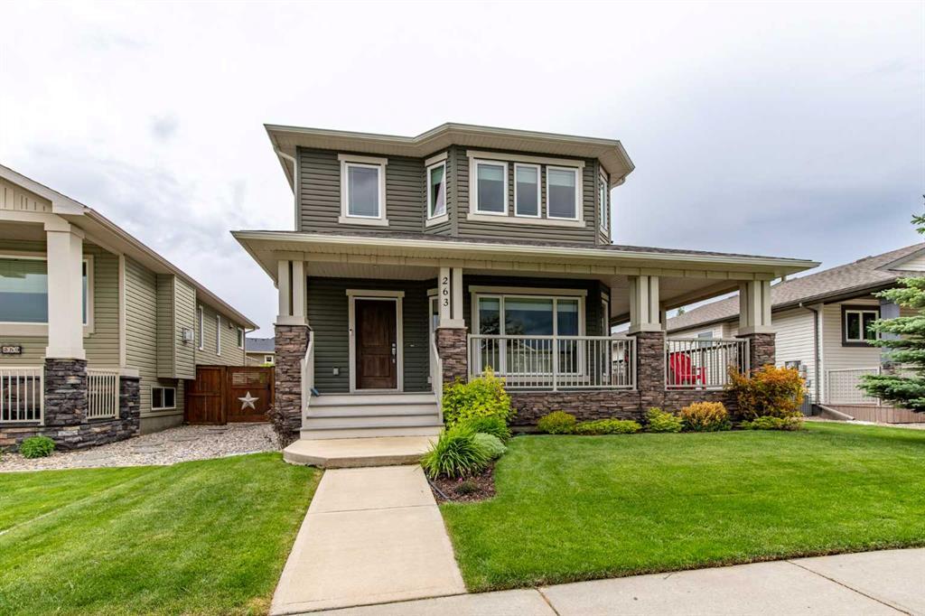 Here's a custom 2 storey in Riverstone with all of the bells and whistles! Fully finished with solar panels, wet bar, AC, electric fireplace, underground sprinklers and more! The main floor of this home is the perfect space for hosting - cozy living room with built-in shelves for those book lovers, designated dining area that can host the whole family, beautiful kitchen with modern fixtures and convenient powder room. Theres a huge wrap around deck with covered private area to host your BBQ's this summer. The upstairs has 3 bedrooms, 2 full bathrooms and the primary suite has a bright walk-in closet. The basement is the total man cave and place for guests! There's a family room that is a great place to watch the game complete with wet bar, additional bedroom and bathroom plus your laundry that is nicely tucked away! There's a double attached garage with rear access, it's landscaped and fenced and is only steps away from the coulees!