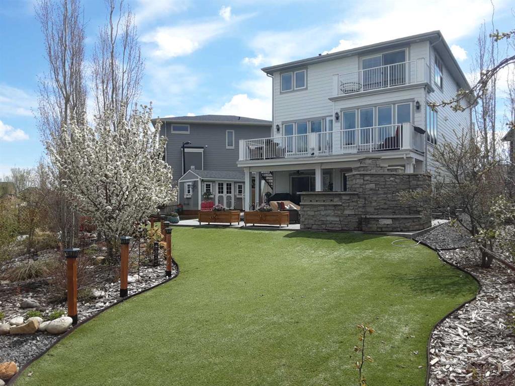 Experience luxury living in the highly sought-after Silverado neighborhood with this stunning custom-built Baywest "Makena" home. Situated on a massive 8190 sq ft sunny pie lot, this executive residence offers over 3400 sq ft of refined living space, featuring a professionally developed walk-out basement and picturesque views of the scenic environmental wetland from all levels. The thoughtfully designed main floor includes 9 ft ceilings, triple pane windows, a chef-inspired kitchen with a stainless gas range and double oven, chimney style hood fan, striking black licorice granite counters with an oversized contrasting white waterfall quartz Island, Miele dishwasher, full height cabinetry, & walk-in pantry. The nook is able to accommodate a lg table, offering stunning wetland views while you enjoy meals with the family. The great room boasts a cozy gas fireplace with beautiful full-height white stone and a dark maple mantle. Separate dining/flex area with large window for natural light. Vinyl deck off the kitchen w/Gas line & water supply. Ascending to the upper level, there are three generous bedrooms. Catch a glimpse of the mountains or the fireworks from your private balcony overlooking Spruce Meadows from the large Primary Bedroom. The 5 pc ensuite has a lg soaker tub, walk-in closet, and dual sinks. The bonus room features a large balcony with taps to water your plants and custom wired for ATMOS 5.1.2 overhead speaker setup, including 8” in-ceiling Polk Audio speakers. Ethernet CAT 6 network wiring is installed throughout the house, ensuring connectivity for all your devices. Upper-level laundry area w/sink. Luxury vinyl plank flooring on both levels. Moving down to the walk-out level with an entertainment area for family gatherings, 4pc bathroom, 4th Bedroom, and R/I for additional laundry. The entertaining area with a sink, cabinets, perfect for extended family or guests. Abundant natural light permeates throughout the home. Double attached garage w/shelving & Dog wash. Stepping outside, the outdoor living space is the one big highlight of the house and is sure to impress. As you enter the private sanctuary, you will notice all of the love, care, and attention that has been paid to every detail in the yard's design. Maintenance is easy with the exposed aggregate patio plus high-quality artificial turf. An assortment of bushes, shrubs, & edible fruit bushes and trees. Custom-built stone wood burning fireplace, BBQ, pizza oven & log storage area. Hardy board shed matching the house . Dog run. Whole Home Kinetico Water Treatment System. Radon Mitigation. Silverado is well situated, close to schools, shopping, & just a 5-minute drive to LRT. Quick access to major arteries, including Stoney, & MacLeod. It is truly a rare find & we hope you will be thrilled with aprox 10-min walk to all the activities that Spruce Meadows has to offer. Silverado features plenty of pathways for cycling, walking & jogging. Don't miss this opportunity to enjoy this phenomenal home.