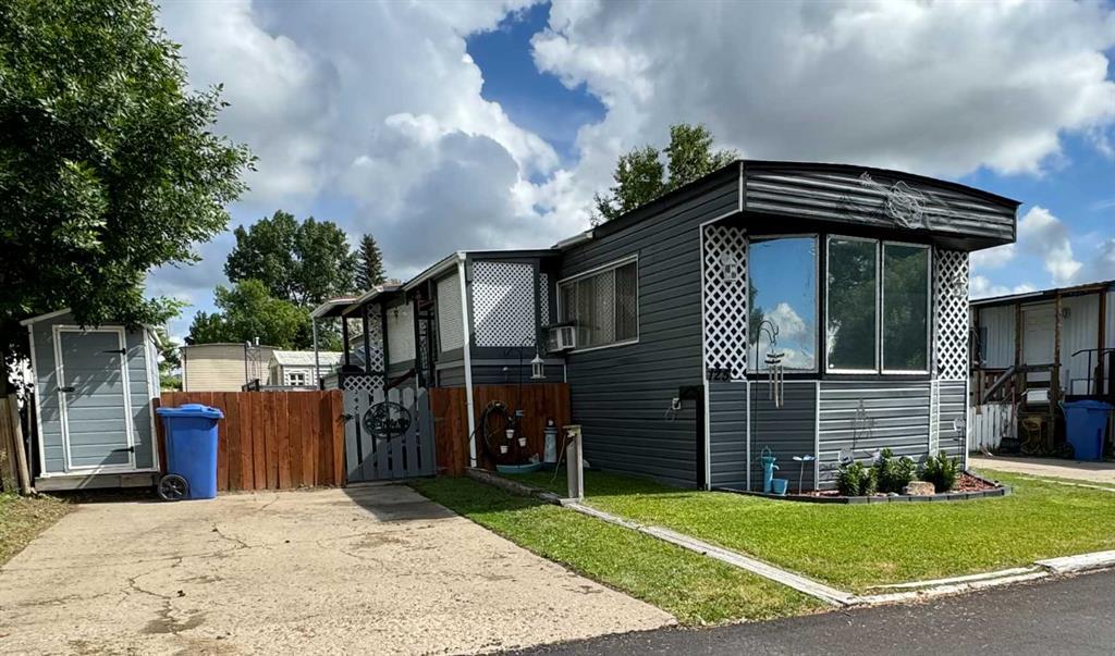 WOW, this one is Special!! This charming single-wide mobile home boasts a fantastic updated partially covered deck perfect for entertaining, complete with a BBQ area and a yard with lush green space and two storage sheds. Inside, enjoy the fresh ambiance with new flooring throughout the kitchen and living room, and appreciate the living room’s updated glass windows with tinting for added privacy and thermal comfort. The kitchen and eat-in area come fully equipped with appliances, while the laundry room features ample storage and includes a great washer and dryer. The bathroom shines with new lighting, and both bedrooms offer generous closet space. To keep you comfortable in every season, the home is updated with great looking siding, a COOL-COATED ROOF with newer tin, upgraded Insulation in the exterior walls and enhanced insulation around water and plumbing. This is not your regular mobile home, it has great modern updates to save you money on utilities and help you enjoy everyday living! Recent upgrades also include a hot water tank (2020), a new electrical panel (2020), and CENTRAL AIR (2021). Interior also has newer paint and trim that was professionally done. The comfort of Conveniently located close to shopping, parks, and more, this home is a must-see. Don’t miss out on this excellent home. Book a showing today! (Lot fees are $937/month and includes all amenities except electricity.)