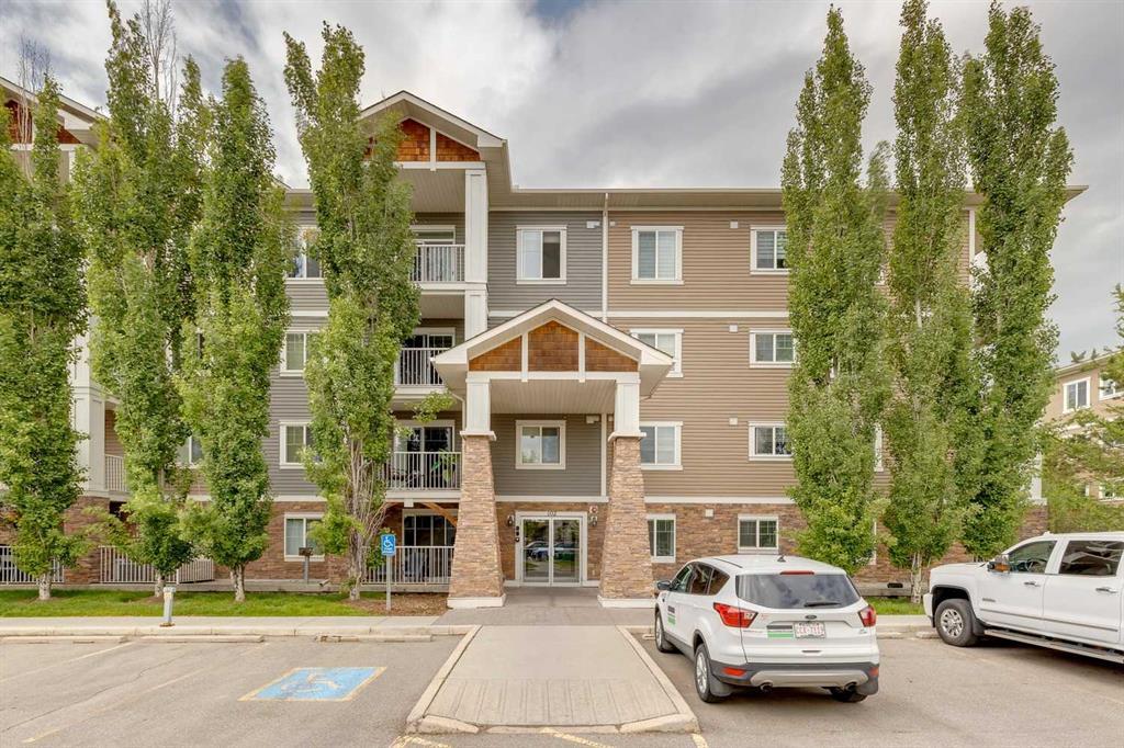 Welcome to your new home in Cranston Place! You will Fall in Love with this bright and sunny Top Floor, 2 bedroom / 2 bathroom unit with a South facing balcony. Step in and enjoy the gleaming hardwood floors throughout the main living space, warm neutral wall tones (recently painted) and 9ft ceilings. The open concept living space features a beautiful kitchen with extended height cabinetry, granite counters, stainless steel appliances (incl. a new dishwasher & new built in microwave) and eat up breakfast bar for those meals on the run. The kitchen overlooks a spacious living room with cozy gas fireplace (great for adding a little ambience), as well as a large area that can be used for dining/flex space/home office….or all 3. The 2 bedrooms are both a generous size and are located on opposite sides of the unit. The primary bedroom features a walk-in closet and a 3 piece ensuite with a stand up shower. There is an additional 4pc bathroom located just off the main living space, as well as an insuite laundry room. This unit includes 1 titled underground parking stall, and a storage locker too! Enjoy the convenience of living within walking distance to groceries, restaurants, café’s, bike paths, parks, schools and public transportation. The community centre features a splash park, outdoor rink (weather permitting), tennis/pickleball courts…and more. Don’t miss your opportunity to own this fantastic Top Floor unit in the sought after community of Cranston!