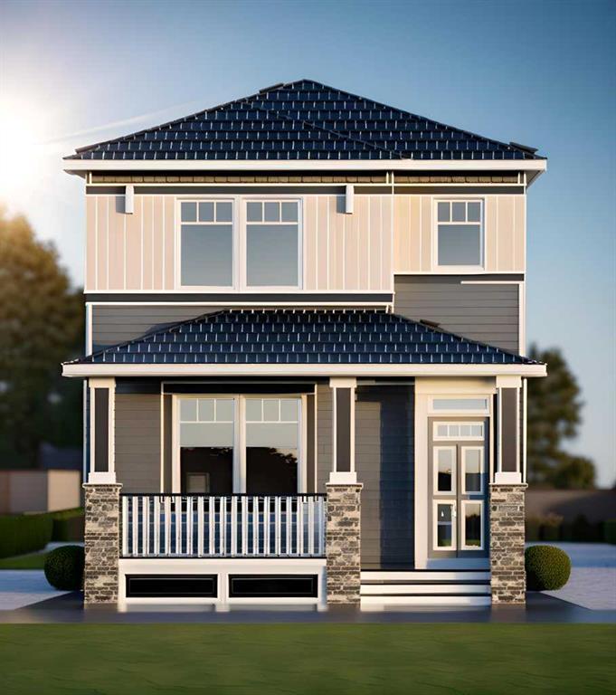 Welcome to the Pinnacle by Look Master Builder, a stunning two-story home that combines modern luxury with practical design. This 3-bedroom, 2.5-bath residence boasts a full-width veranda, perfect for relaxing and entertaining. The spacious interior features 9’ ceilings on the main floor and foundation walls, creating an airy and open feel. Elegant details such as stone countertops, a freestanding tub, and double sinks in the ensuite add a touch of sophistication. The home is equipped with an electric fireplace with a mantle, poplar railing with metal spindles, and California knockdown ceilings. Practical upgrades include a 200AMP panel, an upgraded gas mainline, and a rear gravel pad. Additionally, the separate side entrance and 9' foundation is perfect for future basement development. This home is the pinnacle of comfort and style. *Photos are representative*