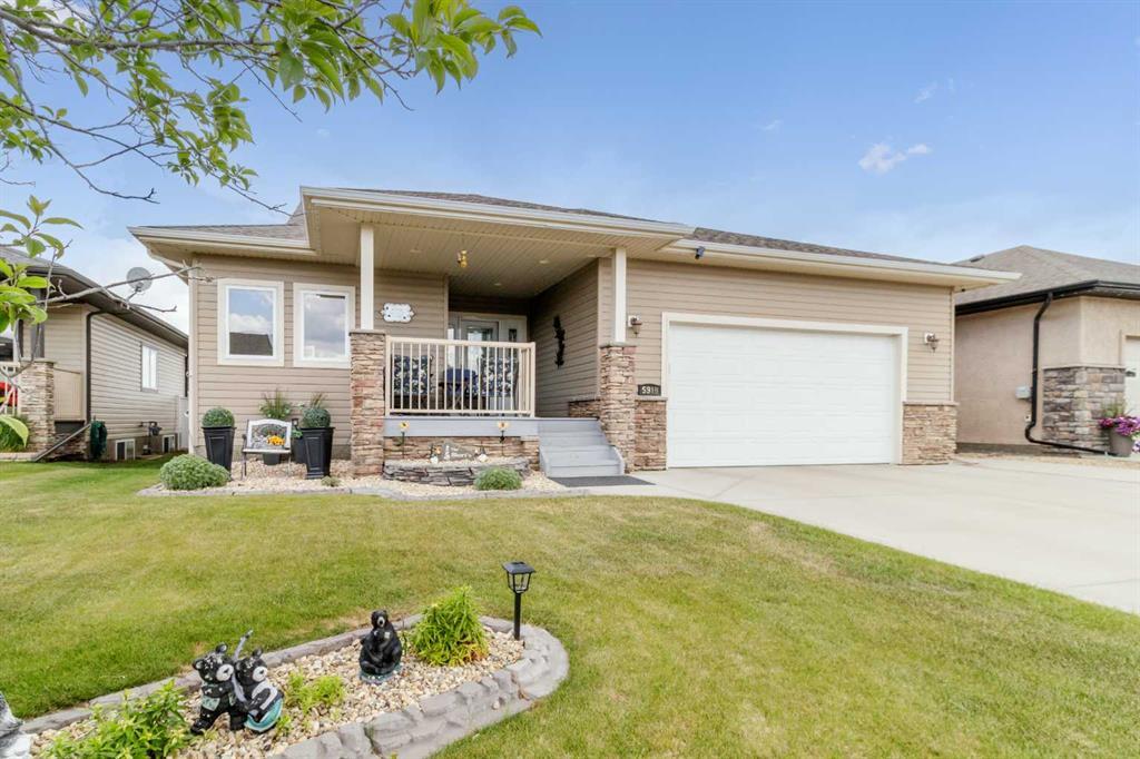 Welcome to this stunning executive bungalow on one of the best streets in Lucas Heights! Instantly appealing with its beautifully landscaped front yard and charming covered deck entry. The open-concept of the main floor boasts a stunning, recently renovated kitchen that is ideal for entertaining, featuring professionally painted white cabinets, a spacious corner pantry, a bar-top counter, and stainless steel appliances. It flows seamlessly into an attached dining area and cozy living room with a fireplace, offering views of the greenspace behind. There is newer luxury vinyl plank flooring. The main floor includes a spacious primary bedroom with a 4-piece ensuite, large walk-in closet, and scenic "country-style" views. Another sizable bedroom and a 4-piece bathroom complete this level.