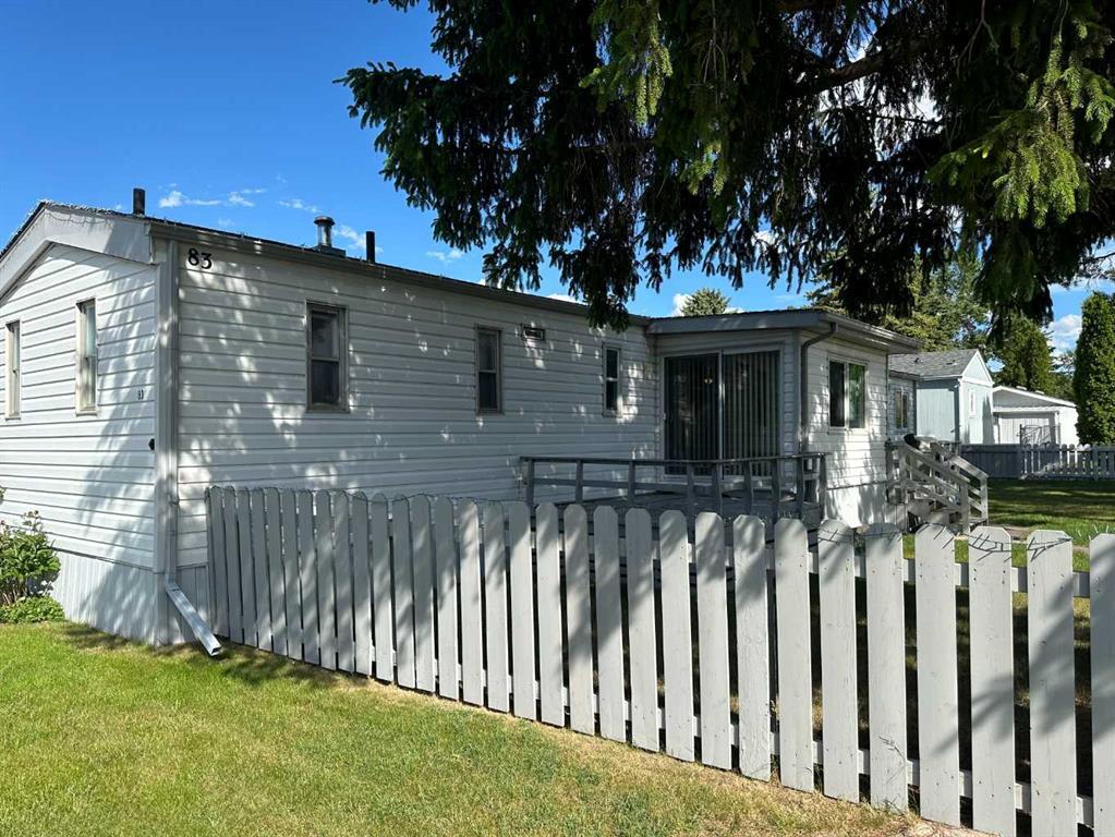 Welcome to this great opportunity for affordable home ownership! This home greets you with an open concept living, dining, and kitchen area. Ample vinyl windows allow natural light to fill the entire space. This trailer features 2 spacious bedrooms, and two bathrooms, along with a functional laundry space. This is one of the best lots in the Park as there is a beautifully placed deck, as well as large trees which provide plenty of shade in the summer time! Lot rent includes water cost, other features include fenced yard, shed, newer hot water tank and flooring throughout.