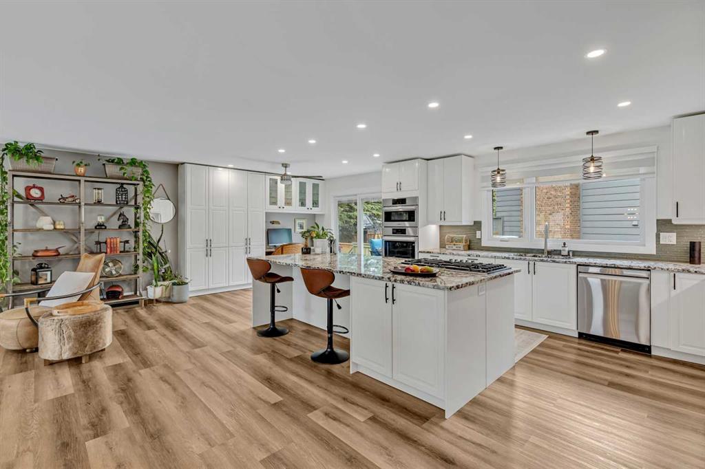 With over 2400 Sq Ft of developed living space. Welcome to this luxurious property located just steps away from South Glenmore Park and Glenmore Reservoir, nestled in the prestigious community of Oakridge Estates. This prime location offers close proximity to Rocky view Hospital, schools, transportation, shopping, and all amenities. Meticulously renovated throughout, this home features an open floor plan, luxury vinyl plank flooring, and new large windows with Zebra blinds. The custom built-ins and double opening entry doors add a touch of elegance. The gourmet kitchen is a chef's dream, boasting a huge granite center island, high-end stainless steel appliances, including Bosch Wi-Fi built-in double ovens, 5-burner gas cooktop, and a Samsung fridge/freezer with Wi-Fi and a separate drink cooler. Patio doors off the kitchen lead to a private deck and backyard oasis. The master retreat offers ample closet space and a 2-piece ensuite bathroom. Additionally, there is a second spacious bedroom and a full bathroom on the main level. The fully finished lower level includes a family room with an electric fireplace, two large bedrooms, a full bathroom, a laundry room, and extra storage space. The property also features a double attached garage and a separate side driveways for RV or additional parking. This home is truly amazing and a must-see. The community offers serene bike and walking paths, outdoor recreation, and opportunities for boating, fishing, hiking, and more amidst the beauty of nature.