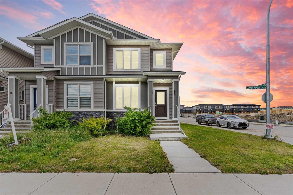 **REDUCED TO SELL - QUICK POSSESSION**A stunning 2-storey side-by-side duplex featuring a total of 3 bedrooms and 3.5 baths that seamlessly blends modern convenience with comfortable elegance. This beautifully designed home offers an inviting open floor plan, perfect for both entertaining and everyday living. As you step inside, you’ll be greeted by a spacious, light-filled living area that flows effortlessly into the well-appointed kitchen. The kitchen is a chef’s dream, featuring a large island, ample counter space, and a convenient pantry, providing plenty of storage and functionality for all your culinary needs. The main floor’s thoughtful layout creates an ideal space for gatherings with family and friends, with a seamless transition from the kitchen to the dining and living areas. Upstairs, you'll discover a cozy family room, perfect for movie nights or as a kids' play area. The primary bedroom is a true retreat, offering a 4-piece ensuite bath and a generous walk-in closet, providing a space to unwind at the end of the day. The second bedroom also features a walk-in closet, ensuring that storage will never be an issue. The fully finished basement adds even more versatility to this already impressive home. It boasts a second kitchen, making it perfect for extended family living. The basement also includes a spacious recreational room with a cozy fireplace, providing a warm and inviting space for relaxation or entertaining. Additionally, the basement bedroom features its own walk-in closet, offering privacy and convenience for guests or family members. This home is ideally suited for a growing family or anyone seeking a spacious, stylish living environment. The property’s thoughtful design and numerous amenities make it a standout choice in the market. Don’t miss the opportunity to make 141 Corner Meadows Gate NE your new home, where comfort, style, and functionality come together in perfect harmony! Schedule a showing today and experience the charm and elegance of this exceptional property.