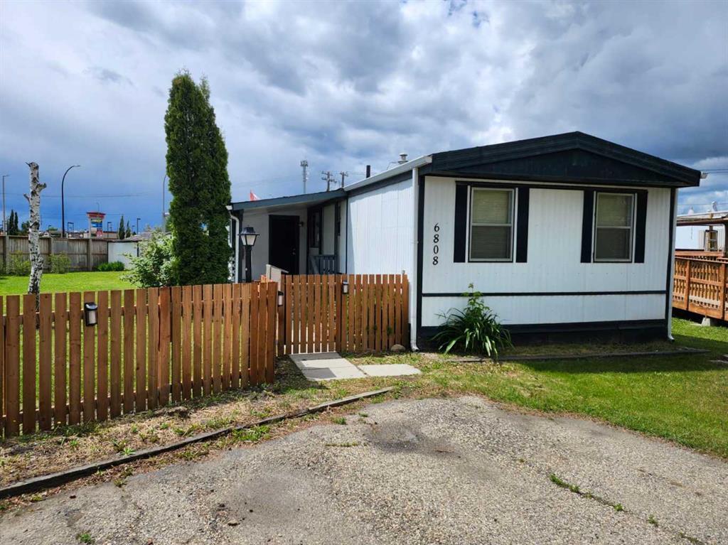 Well maintained mobile home on a sprawling pie-shaped lot featuring perennials, saskatoons and raspberries. This home features 2 large bedrooms, 2 4 piece bathrooms and an open kitchen dining area. Both the living room and second bedroom has new carpet, and all the faucets have been updated. The only left to do is the ensuite floor, all the heavy lifting is done. It also has a heated 10x8 addition as well as an attached covered porch, 2 huge sheds and storage space. The location itself is ideal for families, being within easy walking distance to nearby schools and parks. Children can safely play and explore in the green spaces just across the street, while residents enjoy the convenience of nearby amenities and recreational opportunities.