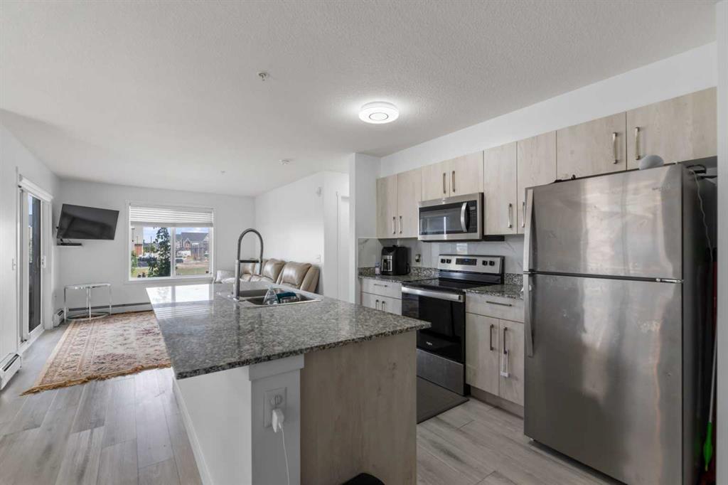 2 Bedrooms + Den | 2 Bathrooms | Open Floor Plan | Come home to this BRIGHT corner unit with a well-laid out modern design. The kitchen is equipped with a large island ready for entertaining and dining, granite countertops, and stainless steel appliances. Leading to the living room that opens to a large private balcony, perfect for morning coffee or evening relaxation. The spacious den can be used as a dedicated home office or extra room for guests. The large master bedroom offers a walk-through closet that leads to your 3-pce ensuite bathroom. The convenience of in suite laundry room can’t be overstated. Residents have access to fantastic amenities including parks, and recreation room. Whether you’re looking for easy living or a great investment, Skyview Landing offers low condo fees and a prime location. Close to major roads, shopping, and schools. Don’t miss out on this exceptional opportunity!