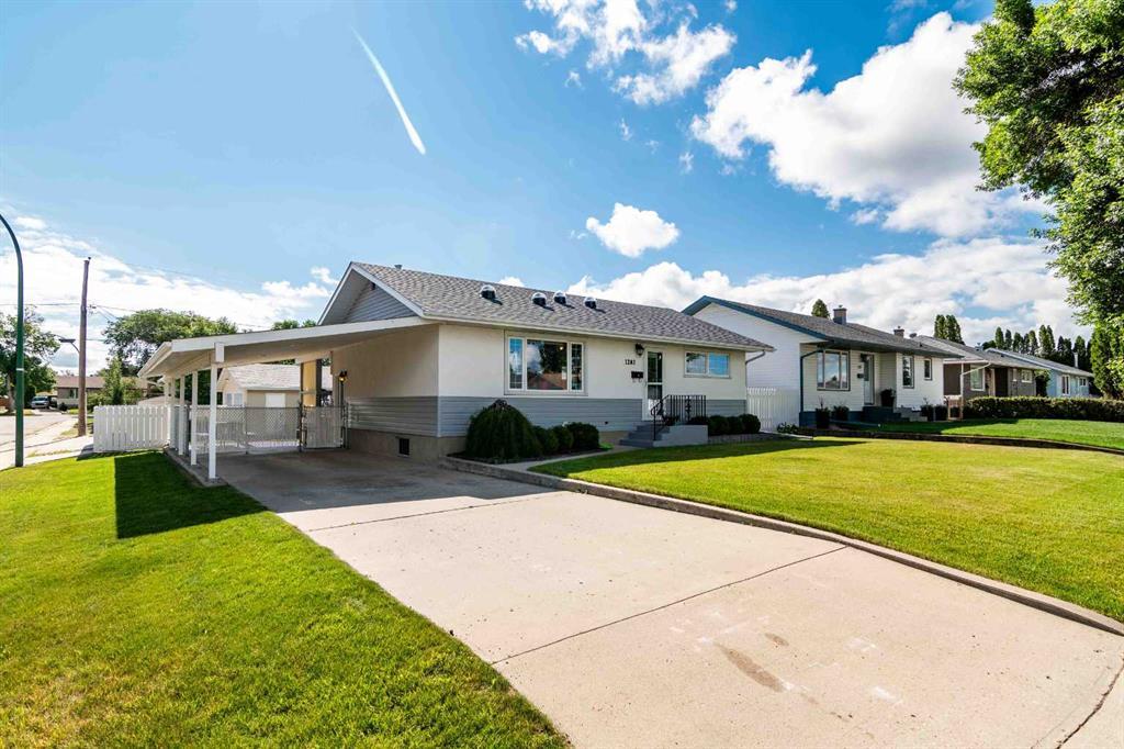 PUBLIC OPEN HOUSES AUGUST 10th & 11th from 2:30-3:30pm. Welcome home to a meticulously maintained property. This exceptionally bright home boasts seven solar tubes in the main living area, ensuring a light-filled and inviting atmosphere throughout the day. The refinished hardwood floors on the main floor add a touch of elegance, complemented by newer windows and brand new front and side doors. The brand new custom maple kitchen by Hieberts Cabinets features a well-thought-out island with slide-outs for extra seating, a built-in desk area, new appliances, and a reverse osmosis system. The main floor includes two spacious bedrooms and a 4-piece bathroom, while the basement offers an additional bedroom, a 3-piece bathroom, new vinyl flooring, and a large family/flex room. Custom window blinds throughout the main floor. Sliding doors lead to a huge rear covered deck with a corner brick wood-burning fireplace, perfect for outdoor dining and relaxation. The fully fenced and landscaped yard has underground sprinklers that ensures a lush, green lawn with minimal effort. Parking and storage are plentiful with a double detached, newly insulated finished garage with a new Reznor heater, a large covered carport, and an extra-long driveway. The home also features a new electrical service, including a Siemens panel and all wiring to add a generator, ensuring your home is prepared for any situation. This beautiful, bright, and meticulously cared-for home is move-in ready. Take the virtual tour 24 hours/day.