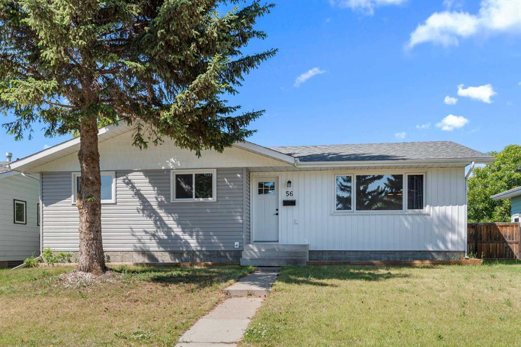 Welcome to 56 Olympic Green! Looking for the perfect modern farmhouse style bungalow on green space? Here it is. This completely renovated bungalow, inside and out, has all the charm and character with an oversized 27x24 detached heated garage! Fully developed with 5 bedrooms and 3 bathrooms there’s so much to like about this well laid out and carefully finished home. Open the door to an inviting open concept main floor living room with an eye-catching fireplace complete with a whitewash mantle, big front window, great dining room space and updated kitchen. The modern kitchen includes a large island, floating shelves, quartz countertop, full tile backsplash and stainless-steel appliances, all new in 2022. A white barn door covers the closet in the main hallway. There’s a beautifully renovated 3-piece bath with floor to ceiling tiled shower and tile floor. 2 good sized bedrooms, plus a beautiful primary bedroom with 2-piece ensuite complete the main floor. You can’t help but notice the wallpaper in the primary room to nicely complement the custom character work done in this home. Off the dining room is a new deck (2022) that looks into the private yard and access to your very own double detached garage, heated, with single doors for each vehicle and large enough to accommodate full size trucks. Downstairs is fully finished where you find a great use of the space. 2 more bedrooms, a 4-piece bathroom, huge family room and the utility room are well appointed and laid out for functionality and convenience. RV parking is available off the back alley if you need. The location couldn’t be better as you have a green space outside your front door, perfect for the kids, the dog or both! It’s a quiet location with local traffic only and is only blocks away from schools, rec facilities, bike and walking trails, shopping and other amenities. It’s completely renovated, with no expense spared and has to be seen to be appreciated. Updates include: High efficiency furnace, HWT, vinyl windows, quartz countertops, new flooring, finishes, shingles and deck (2022). A character home with the charm of yesterday but all the modern finishings that make it perfect for today.