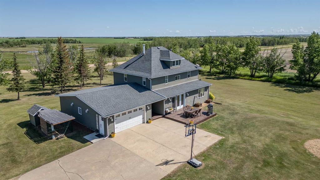 Welcome Home!! This property is absolutely stunning. 6.45 acres located north of Killam you are going to want to grab the family and have a look. From the moment you step through the spacious entrance you will feel at home. The kitchen has custom cabinetry, newer appliances, an excellent eat up island and ample space for all your goodies and there is a spacious dining/living room with a wood burning fireplace to cozy up to. Also on the main level, there is a 4 pc bathroom, laundry room and spacious office with a cozy nook to enjoy your morning coffee. Upstairs you will find a bonus area for the kids, 3 pc bathroom and 3 bedrooms. The primary bedroom has its own ensuite with separate shower, soaker tub and walk in closet. There is a cozy finished attic just up a few more stairs that is great for storage or a hide away. Downstairs you will find another spacious bedroom, 4 pc bath and cozy family room. If you have young kids, they will love the play room and built in slide in the basement. Outside there is tons of room to run, play and garden. There is plenty of space to have the family over and camp, as there is an RV hook up right in the yard. Don't forget to check out the walking trail that is cut in the trees and goes around the whole property. Do you need more storage? Well, this acreage has that as well 24x50 Quonset with 1/2 cement and 1/2 dirt. The SELLER is offering a $4000 DECORATING BONUS.